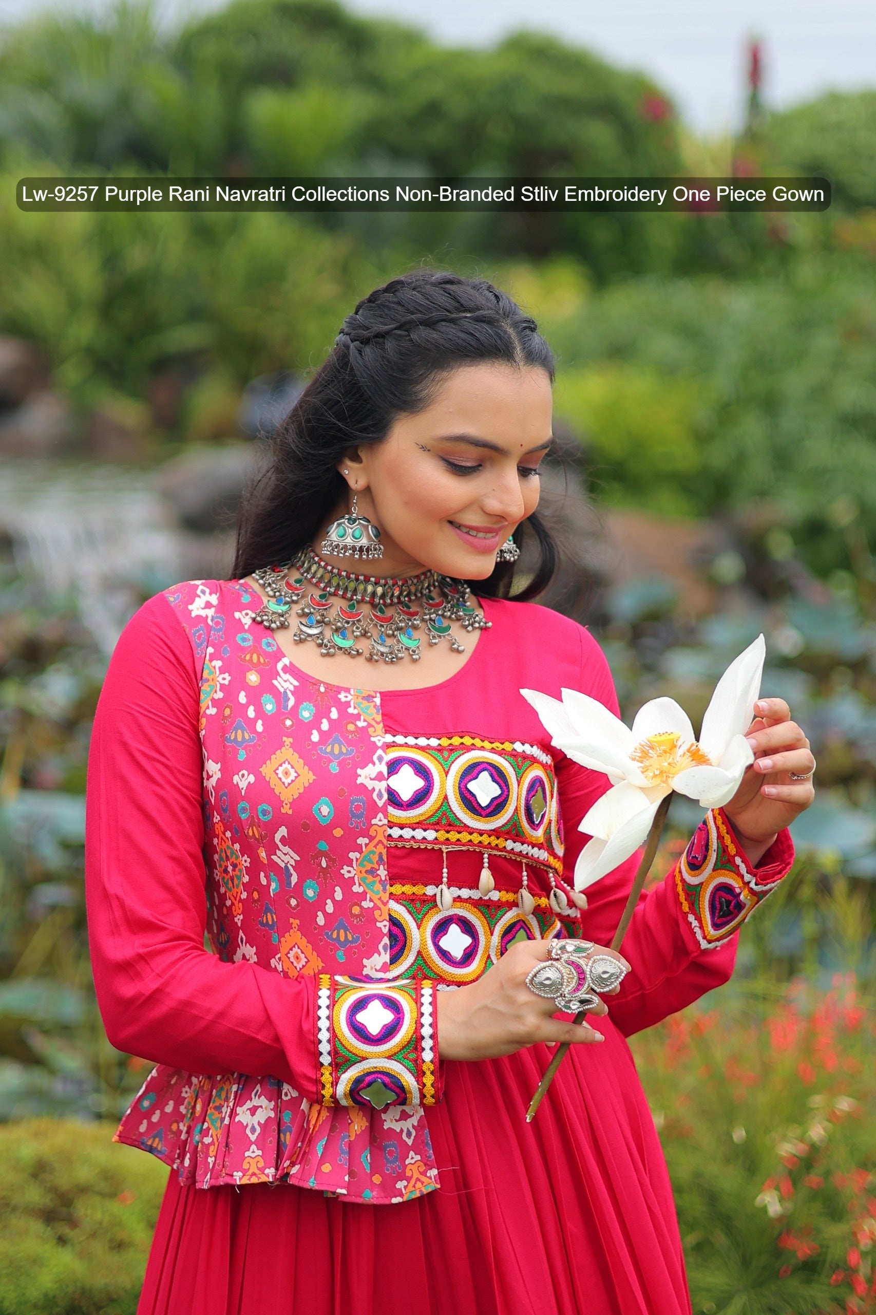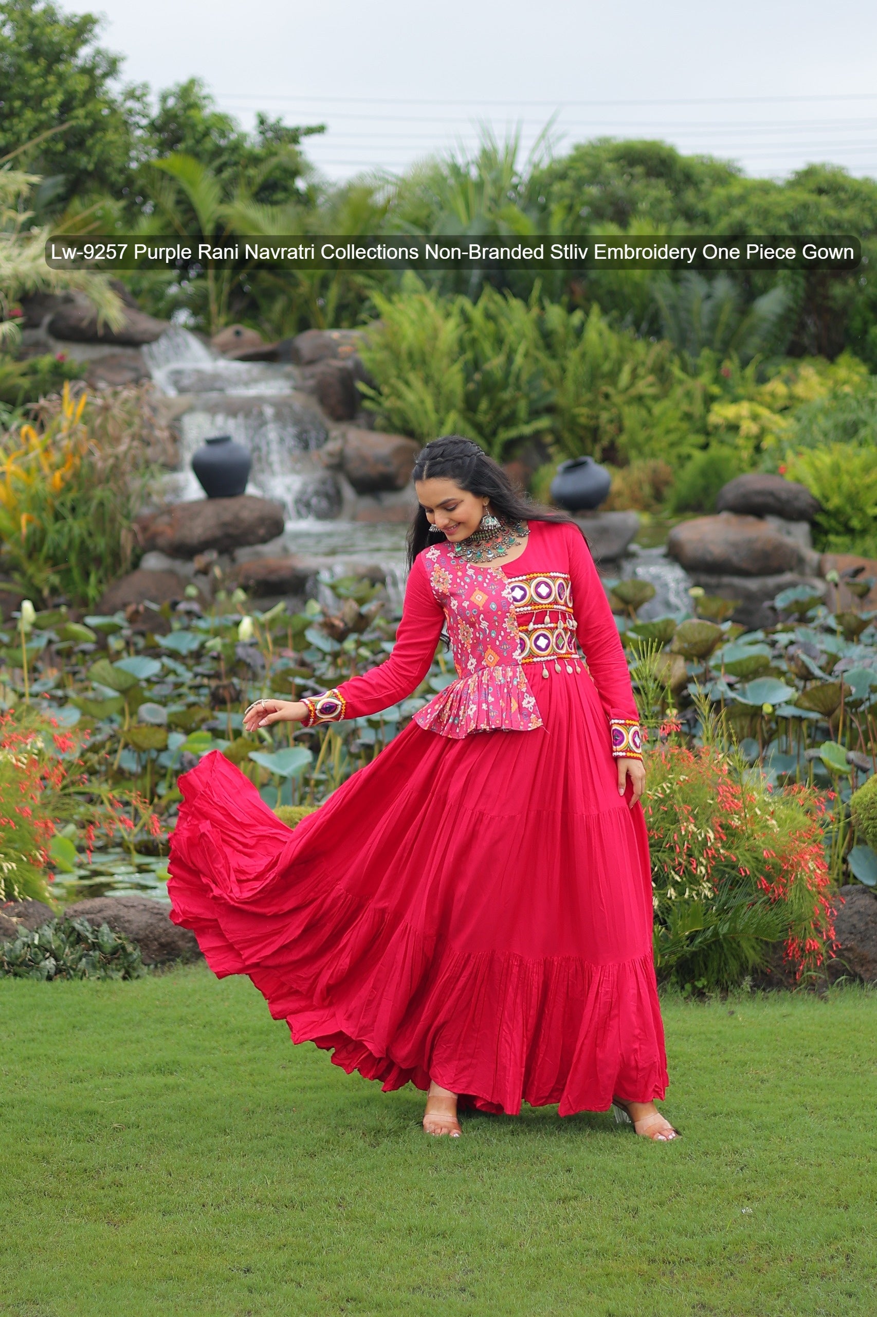 - Lw-9257 Purple Rani Navratri Collections Non-Branded Stliv Embroidery One Piece Gown Dealer Ahmedabad Surat Wholesale Gujarat India Lowest Price Best Quality Buy Purchase Shipping Kurta Salwaar Kameez Also free Cash on delivery