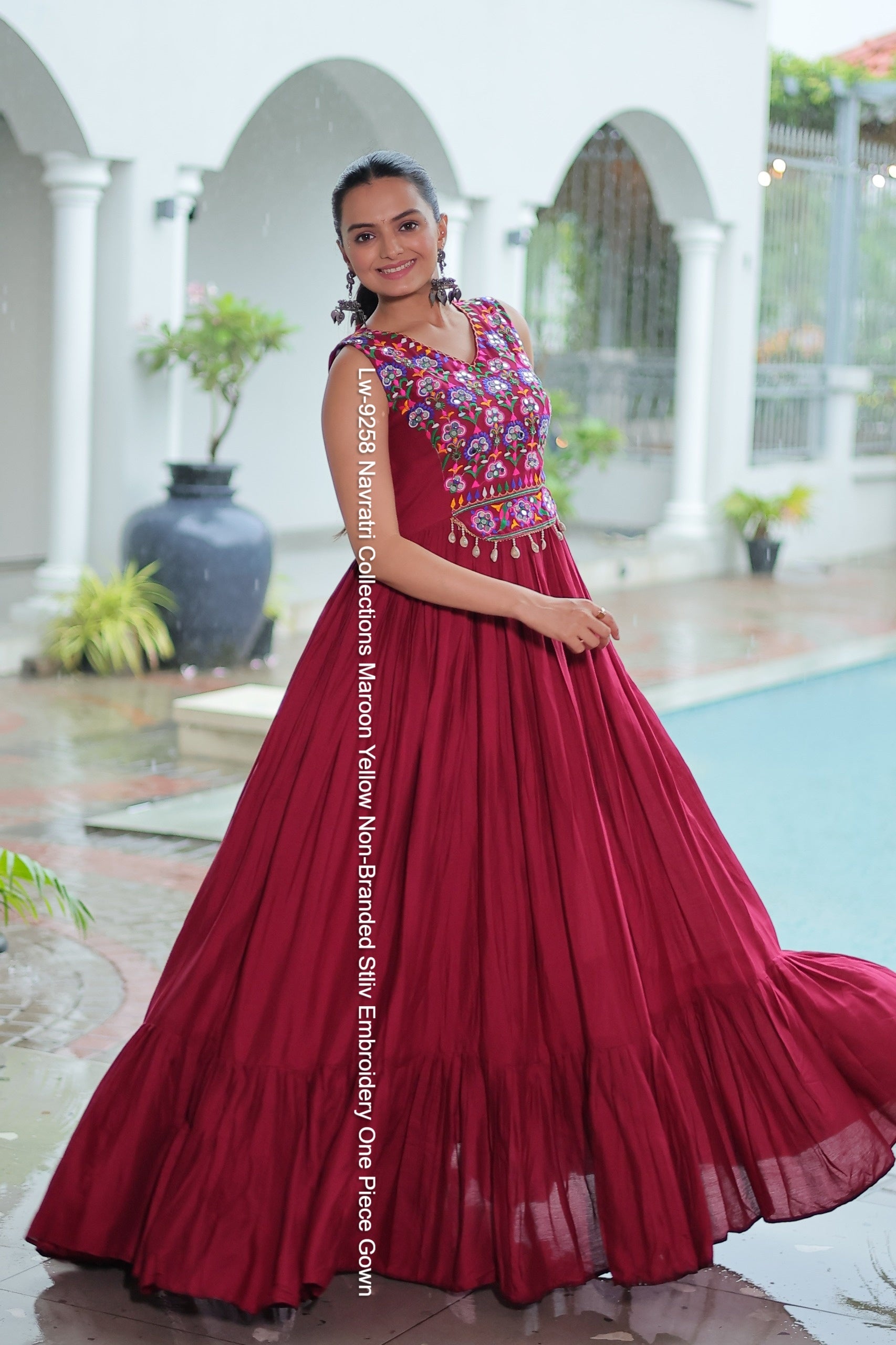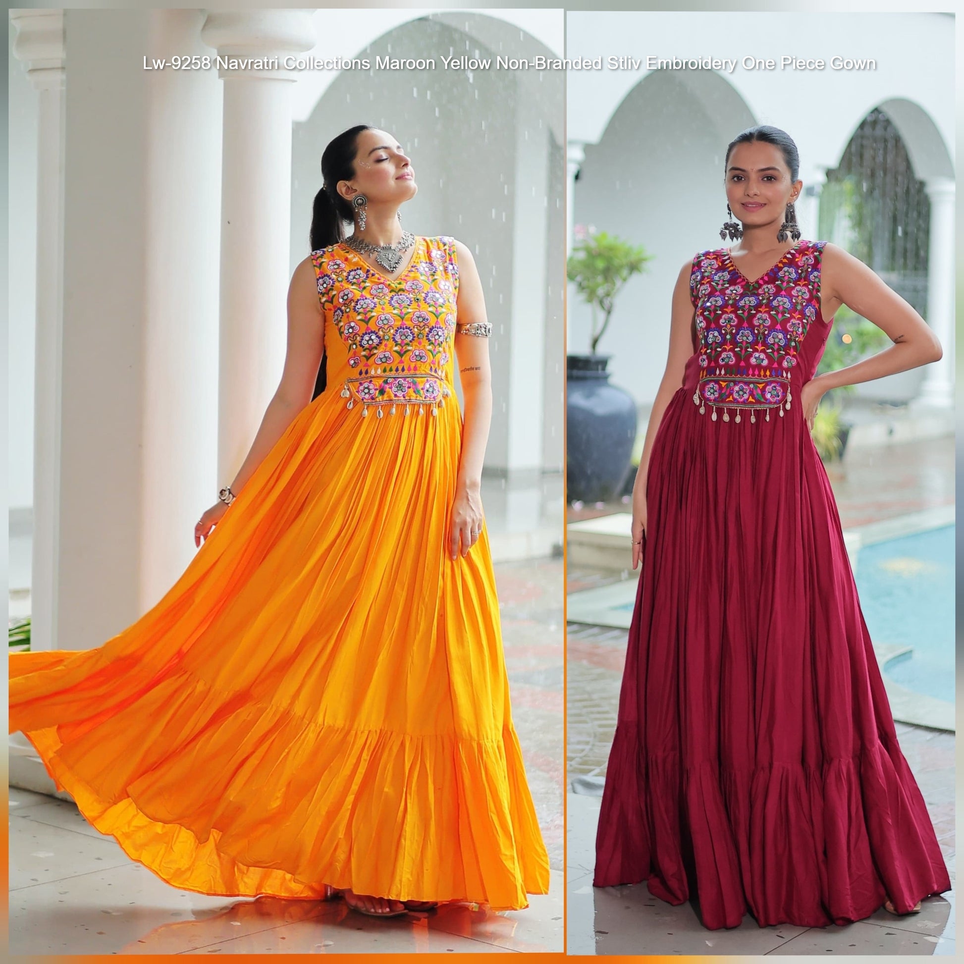 - Lw-9258 Navratri Collections Maroon Yellow Non-Branded Stliv Embroidery One Piece Gown Dealer Ahmedabad Surat Wholesale Gujarat India Lowest Price Best Quality Buy Purchase Shipping Kurta Salwaar Kameez Also free Cash on delivery