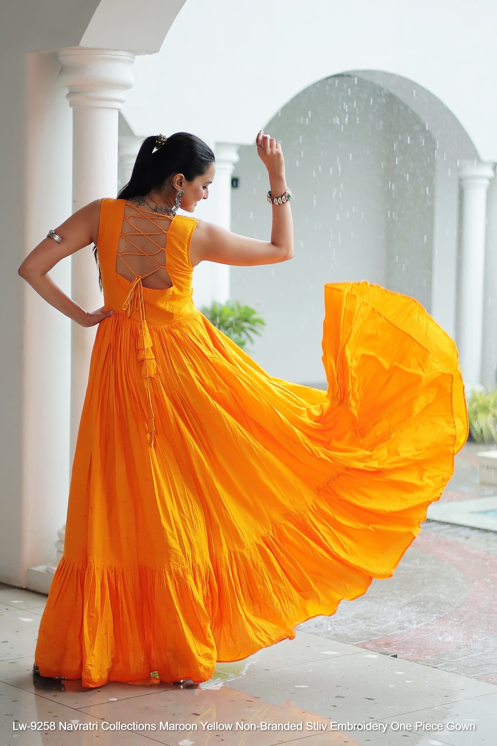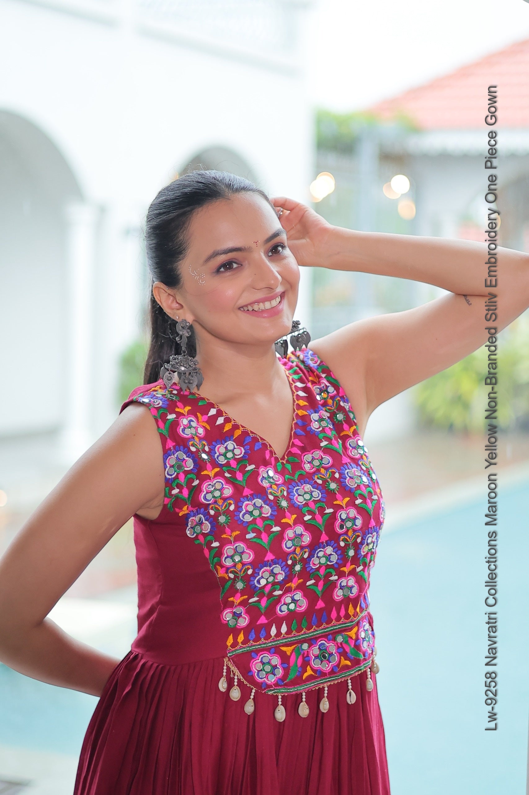 Lw-9258 Navratri Collections Maroon Yellow Non-Branded Stliv Embroidery One Piece Gown