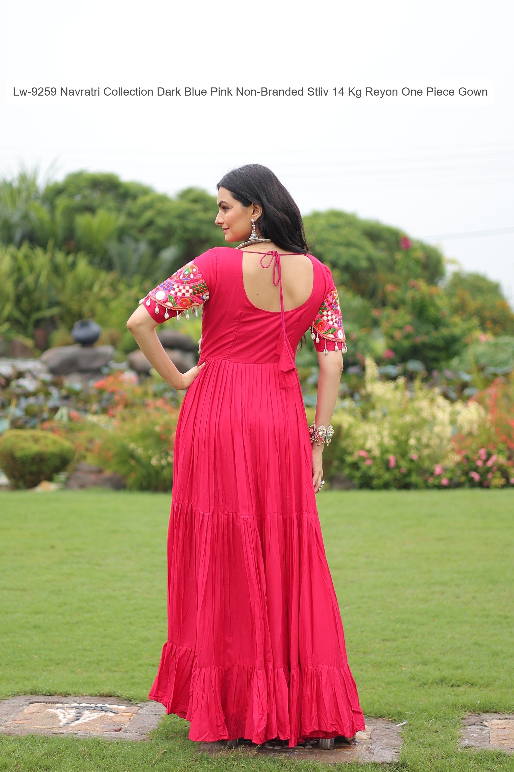 Lw-9259 Navratri Collection Dark Blue Pink Non-Branded Stliv 14 Kg Reyon One Piece Gown