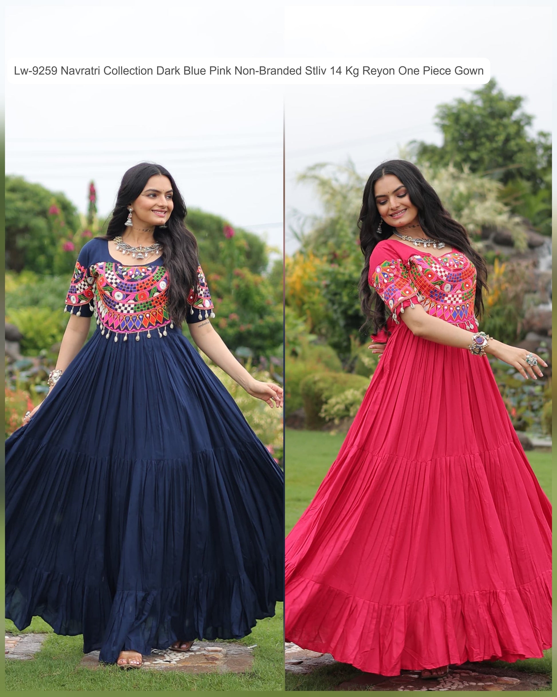 - Lw-9259 Navratri Collection Dark Blue Pink Non-Branded Stliv 14 Kg Reyon One Piece Gown Dealer Ahmedabad Surat Wholesale Gujarat India Lowest Price Best Quality Buy Purchase Shipping Kurta Salwaar Kameez Also free Cash on delivery