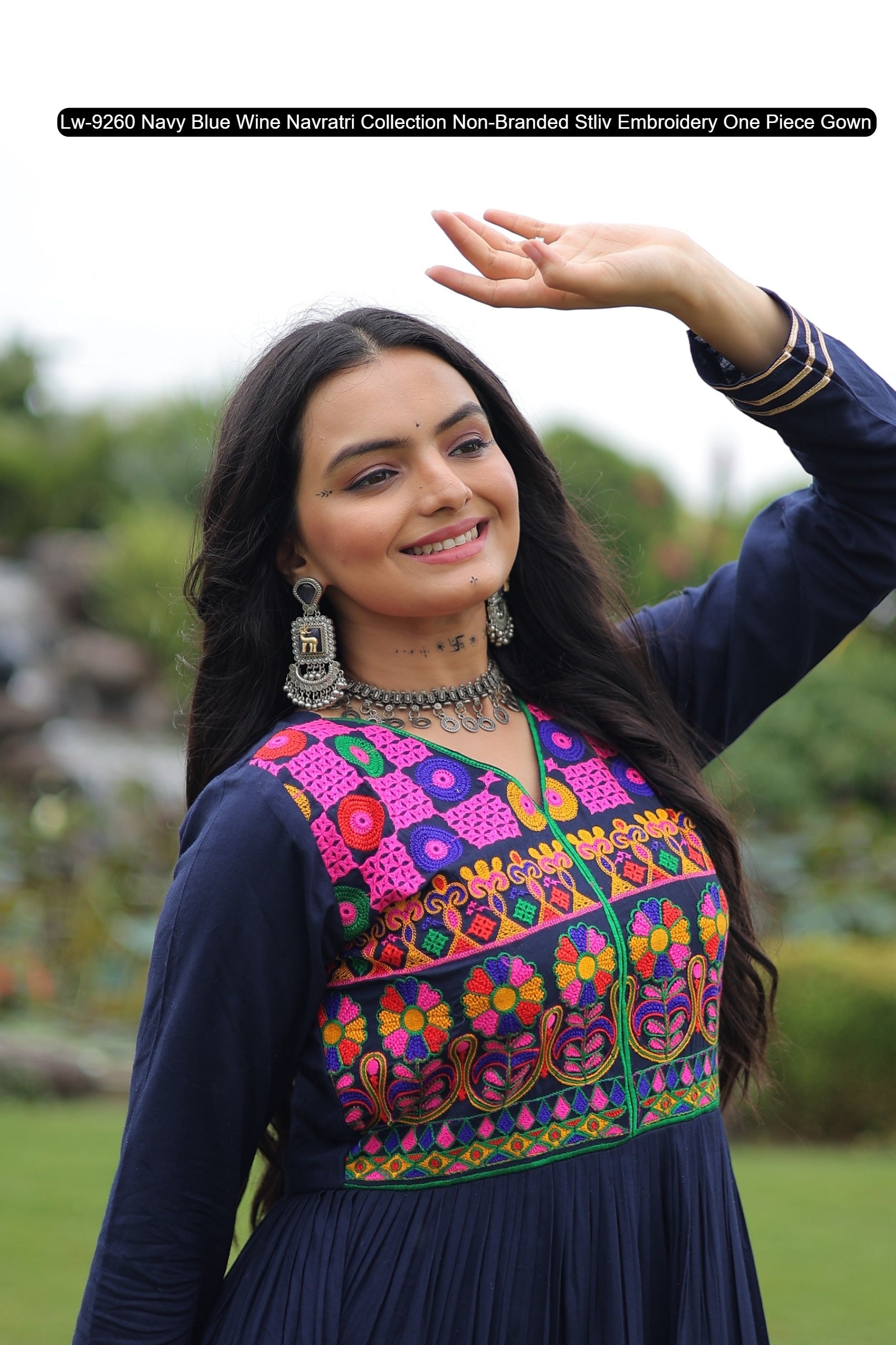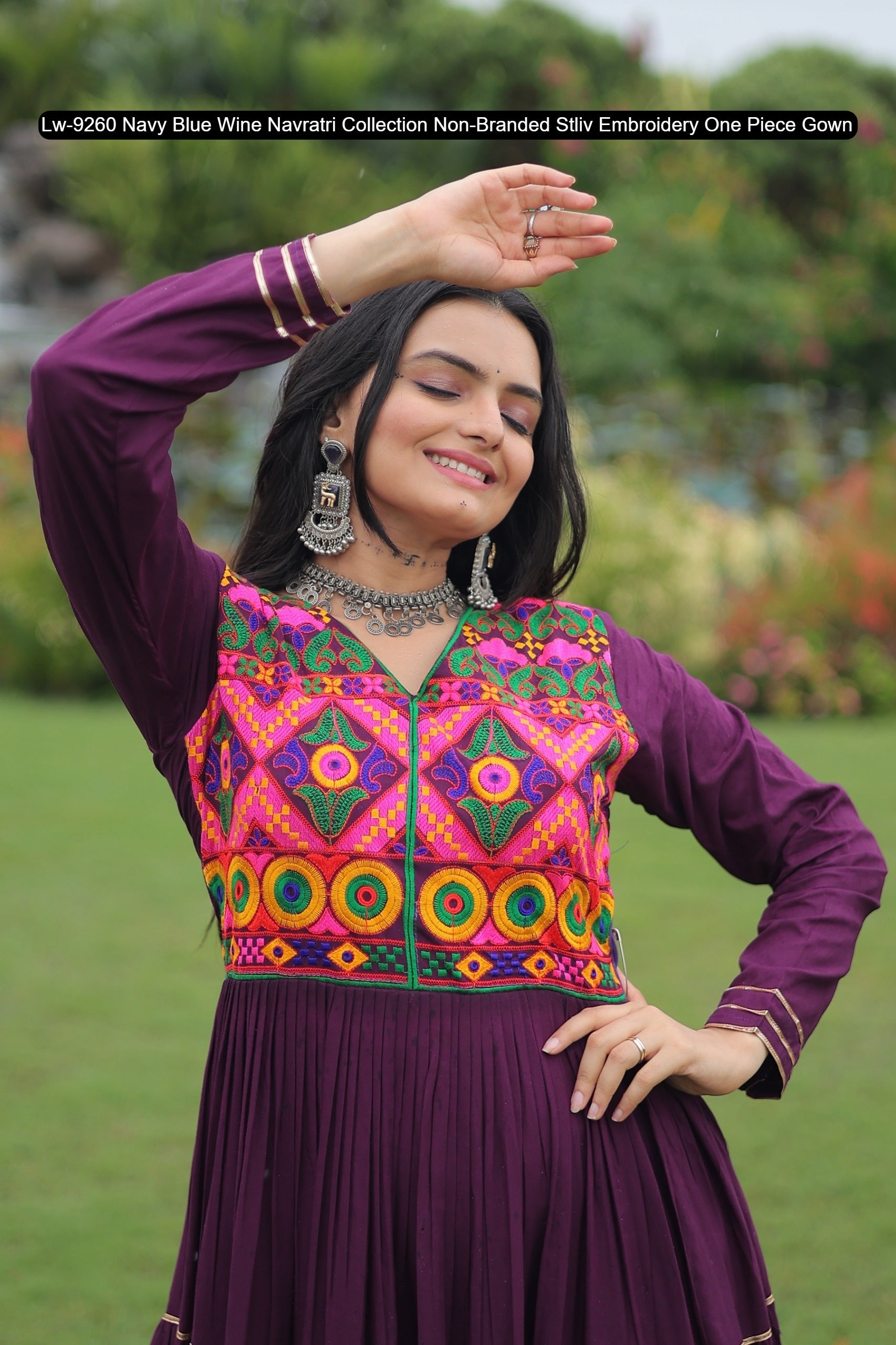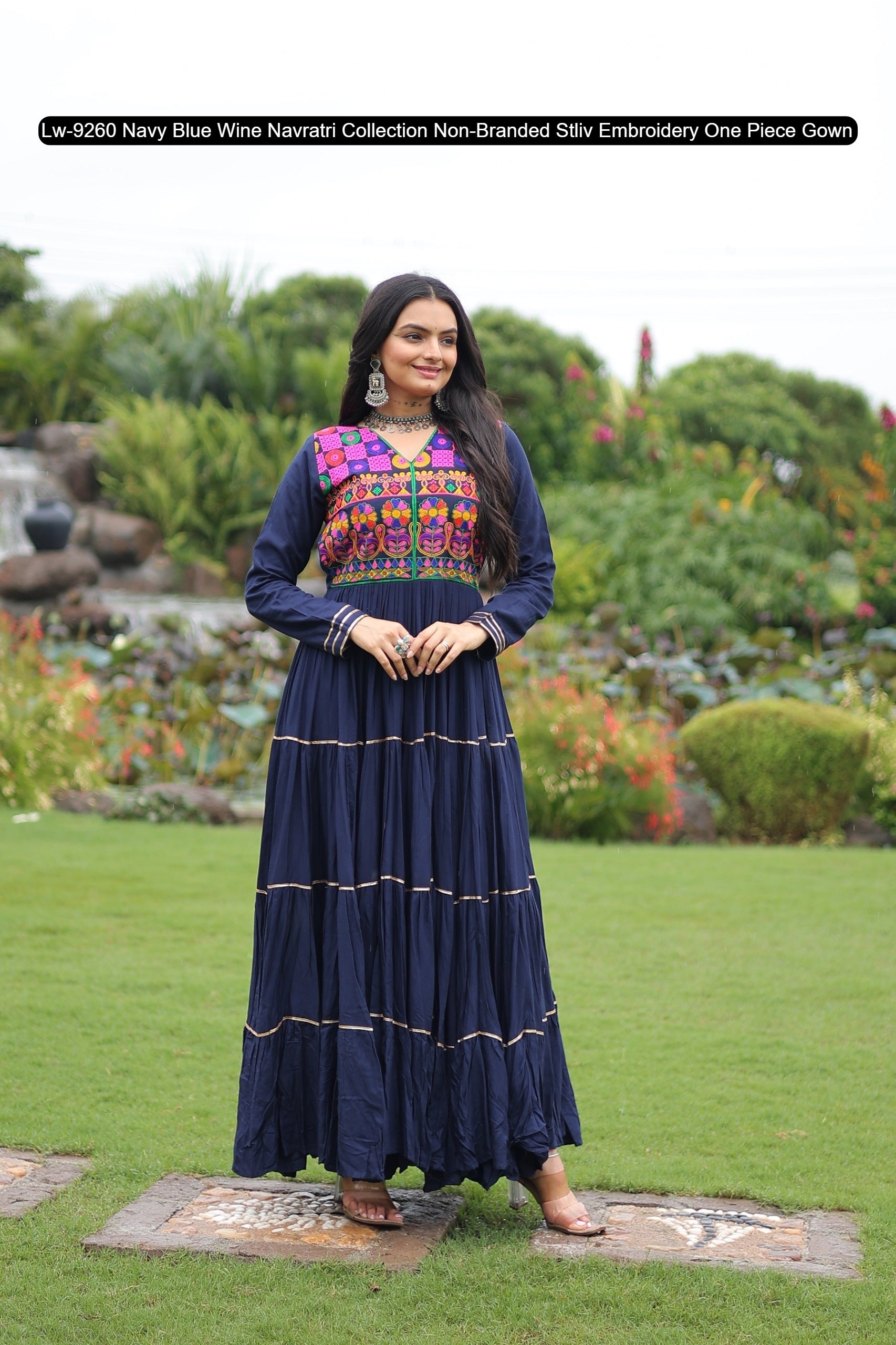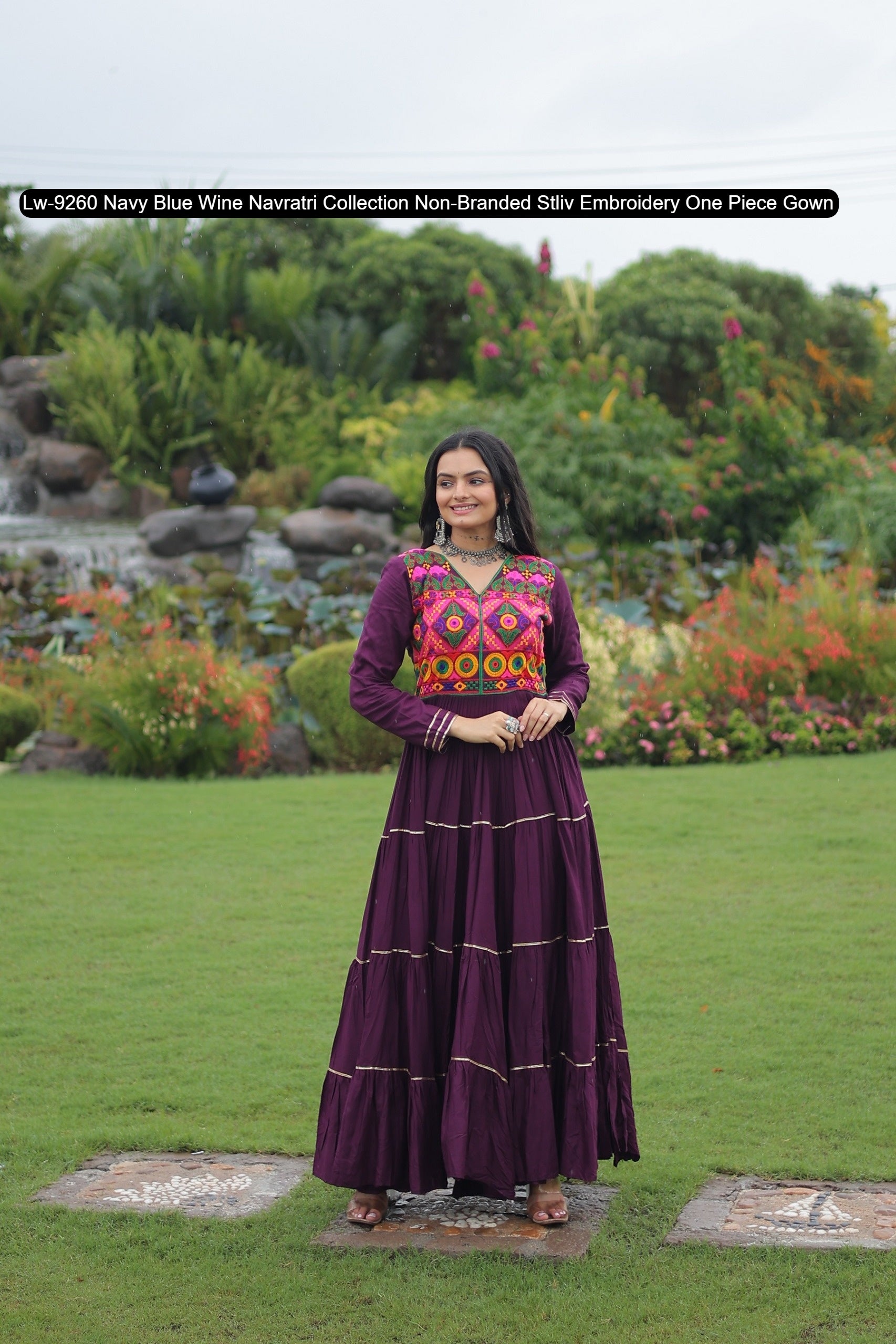 Lw-9260 Navy Blue Wine Navratri Collection Non-Branded Stliv Embroidery One Piece Gown