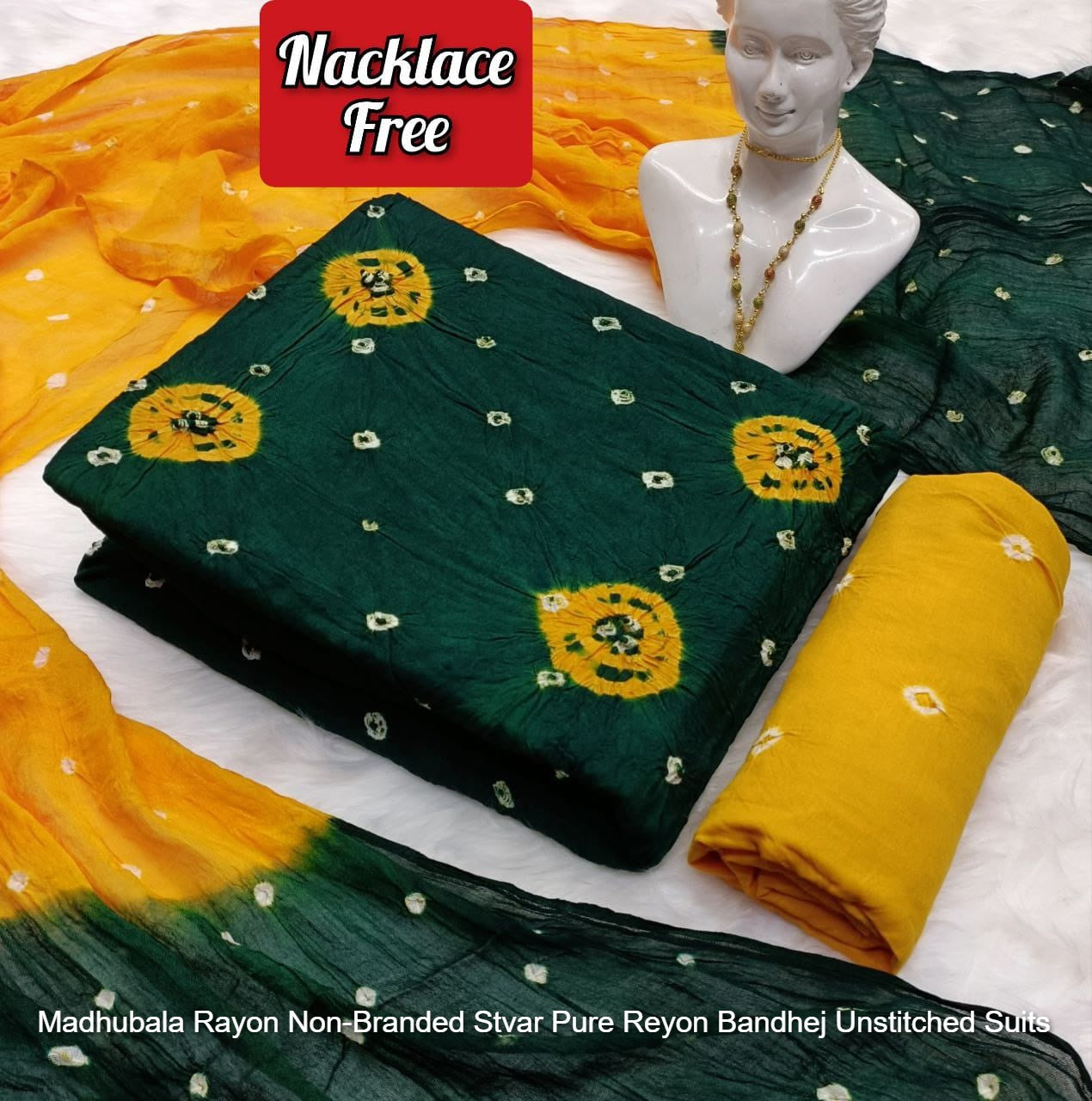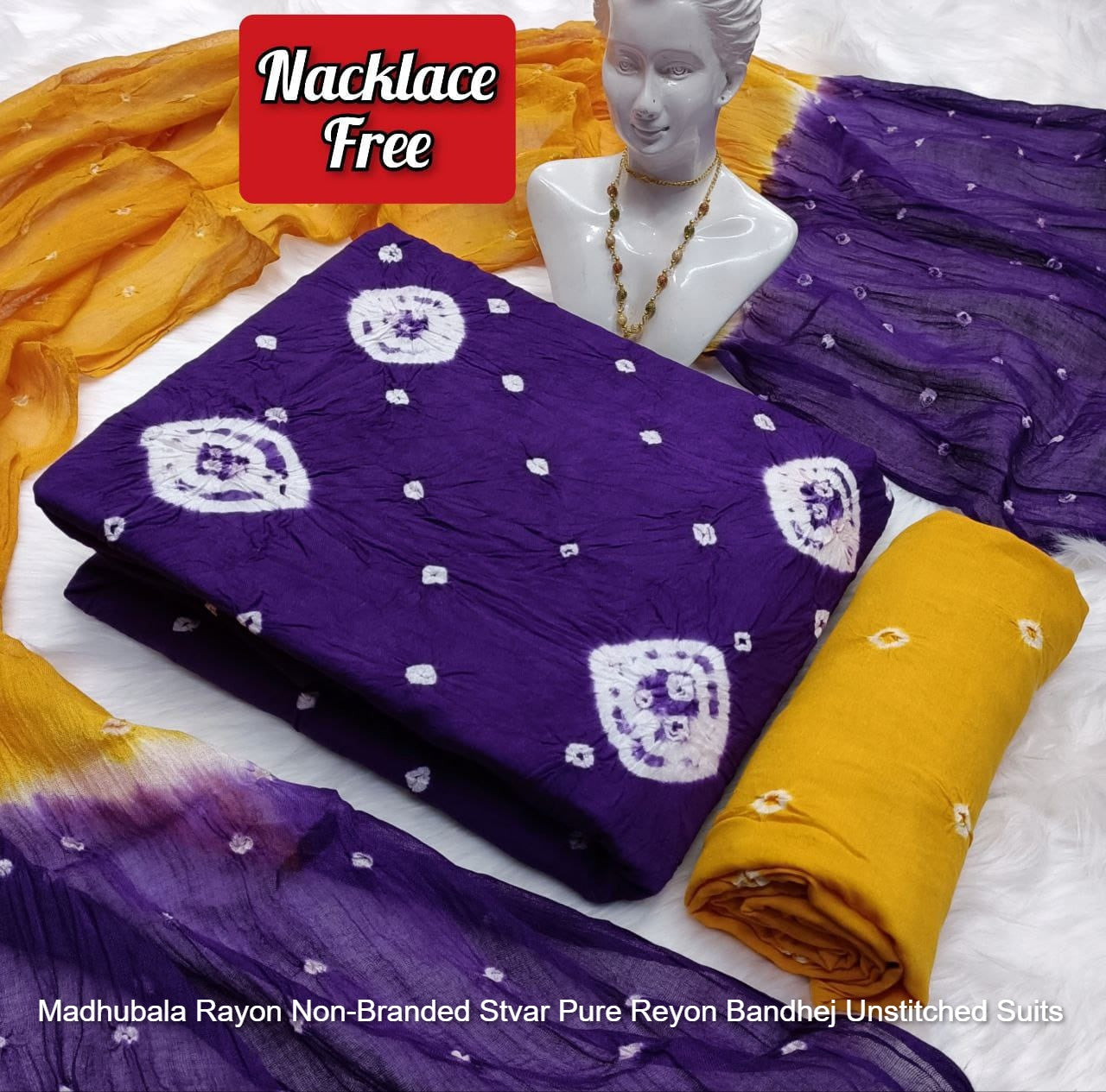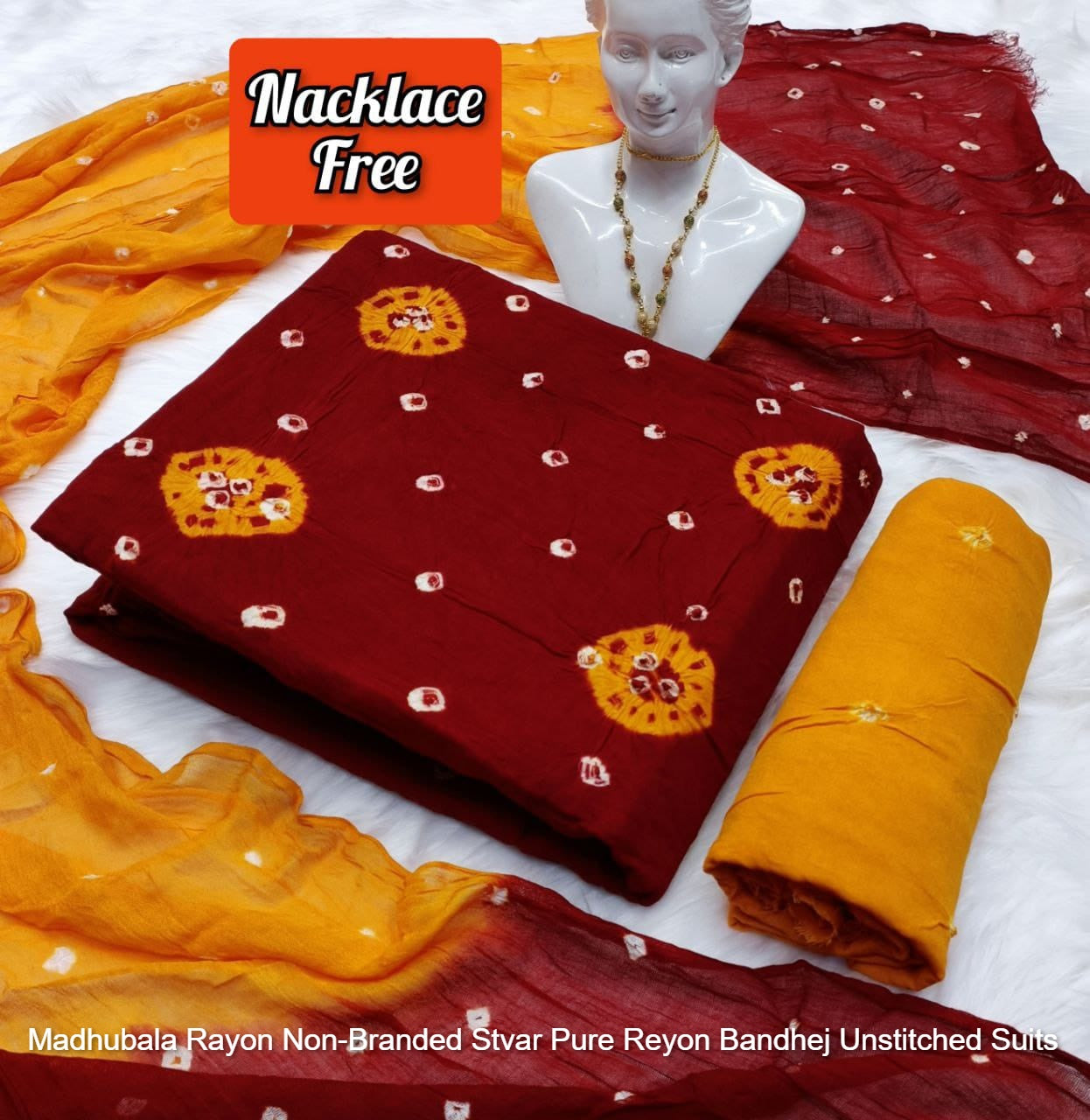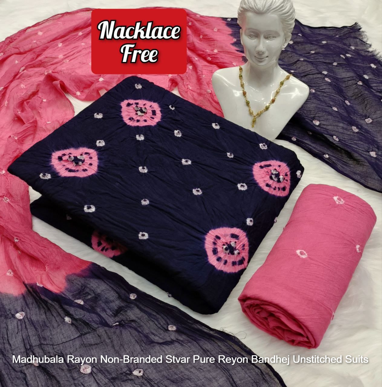 Madhubala Rayon Non-Branded Stvar Pure Reyon Bandhej Unstitched Suits