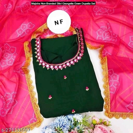 Majisha Non-Branded Stkri Georgette Gown Dupatta Set
