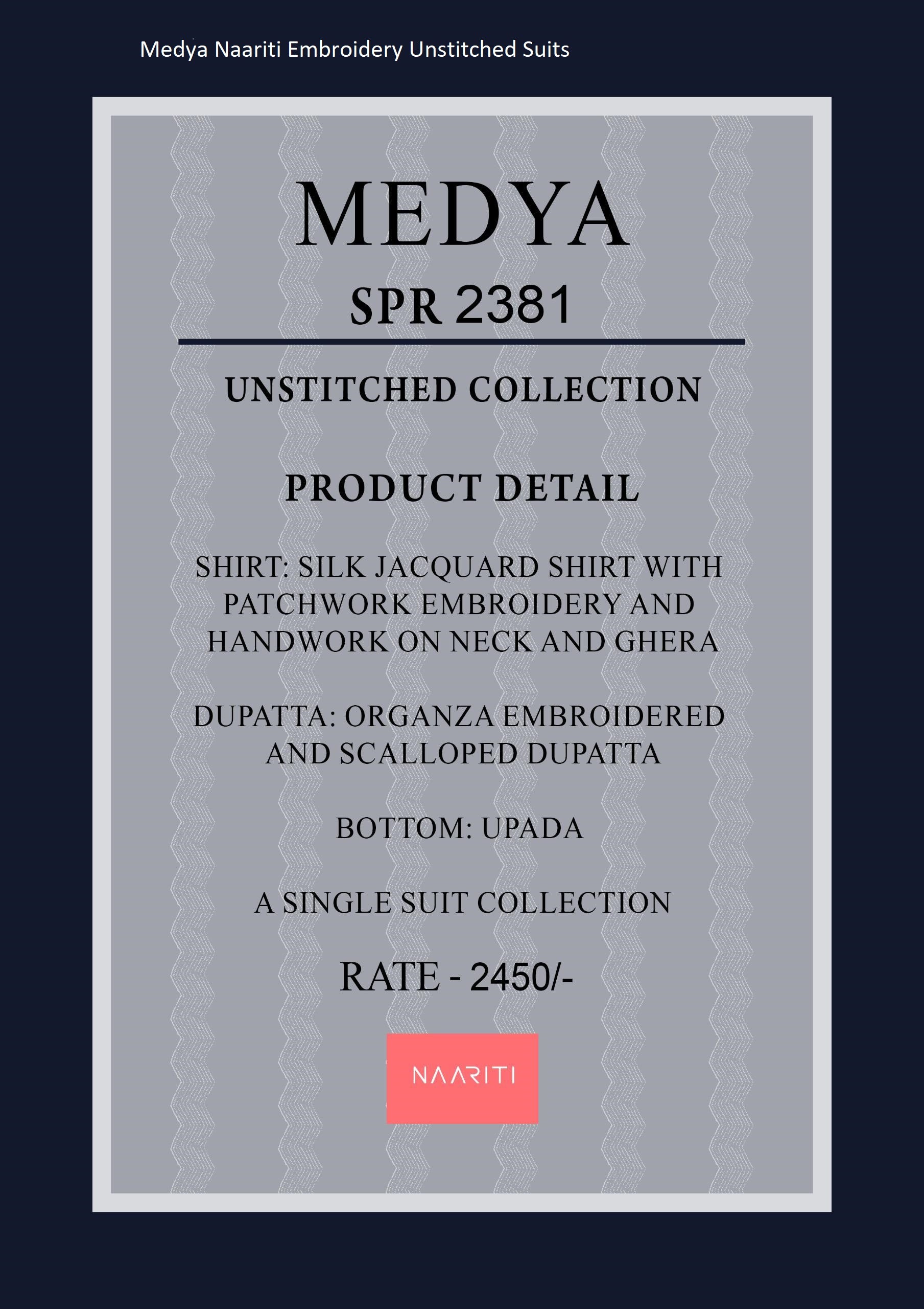 - Medya Naariti Embroidery Unstitched Suits Dealer Ahmedabad Surat Wholesale Gujarat India Lowest Price Best Quality Buy Purchase Shipping Kurta Salwaar Kameez Also free Cash on delivery