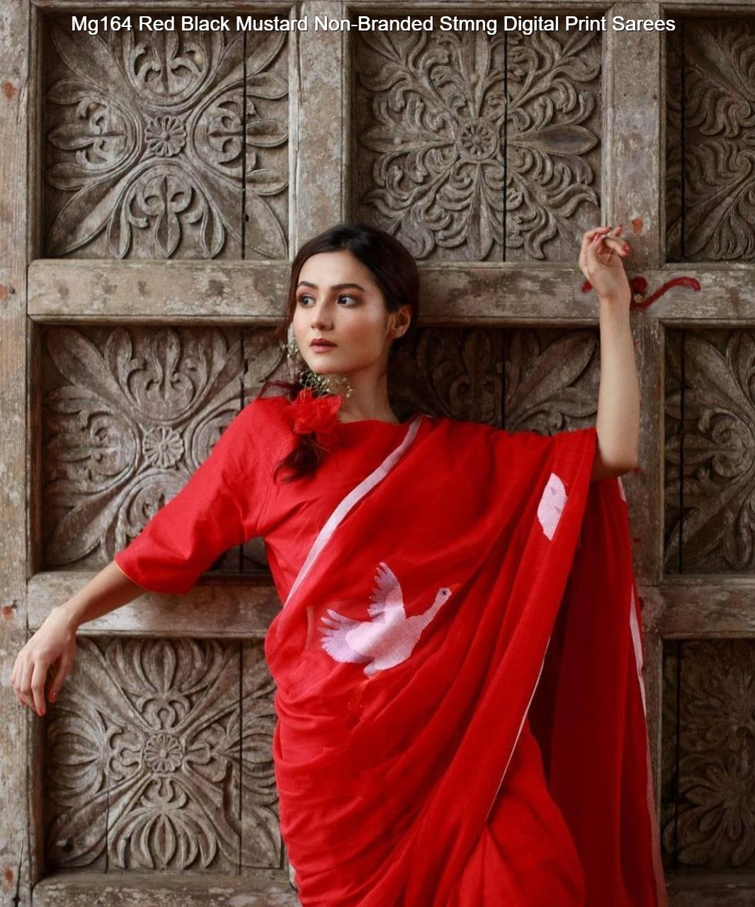 Mg164 Red Black Mustard Non-Branded Stmng Digital Print Sarees