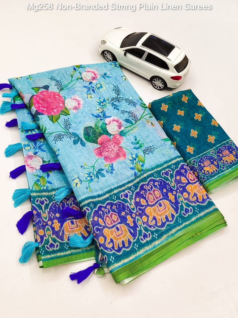 Mg258 Non-Branded Stmng Plain Linen Sarees