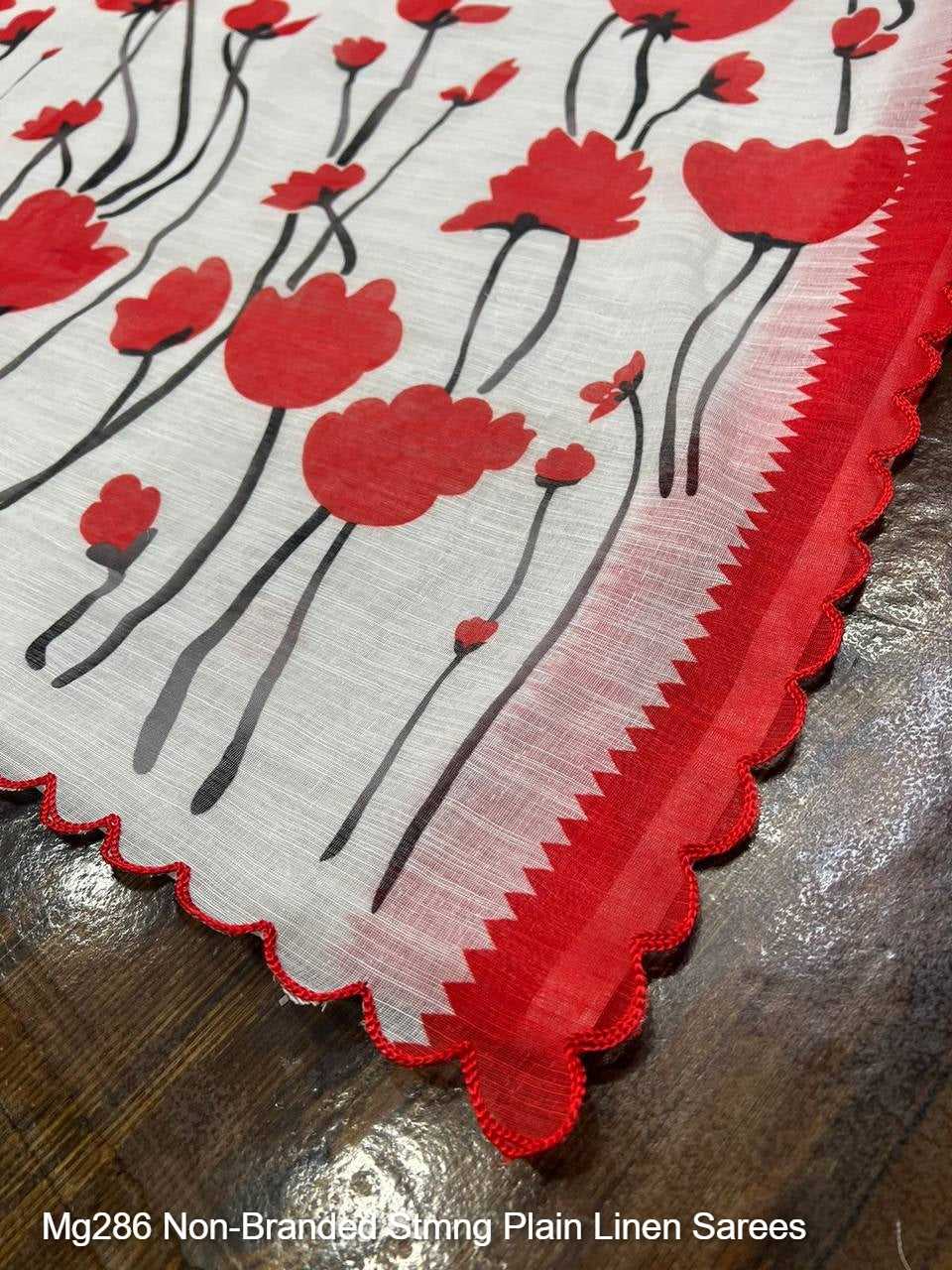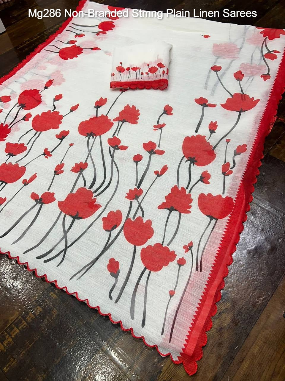 Mg286 Non-Branded Stmng Plain Linen Sarees