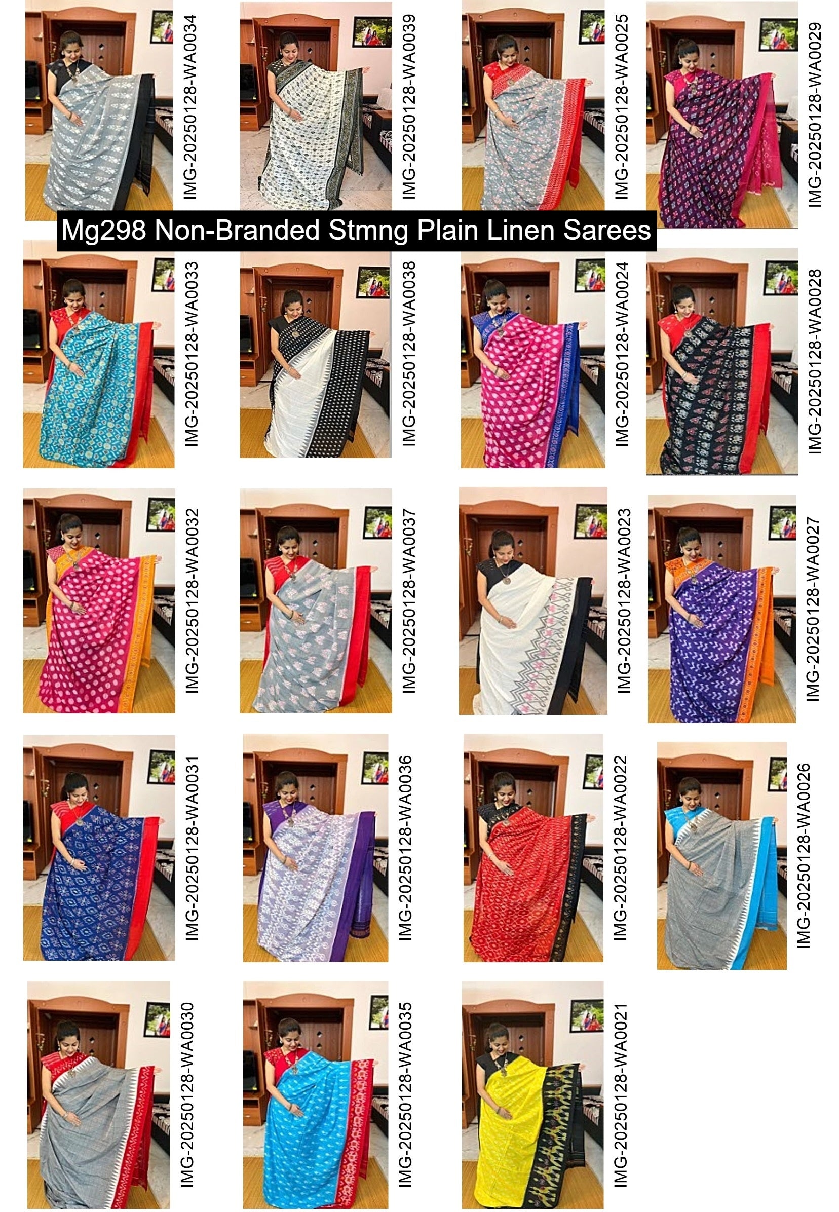 Mg298 Non-Branded Stmng Plain Linen Sarees