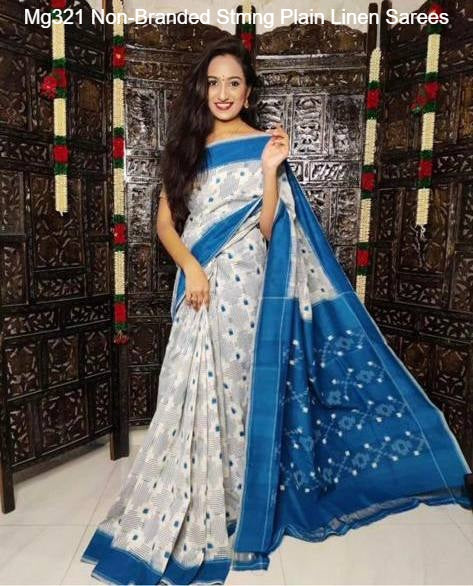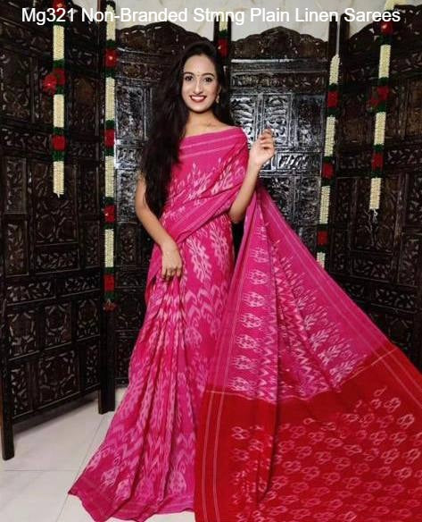 Mg321 Non-Branded Stmng Plain Linen Sarees