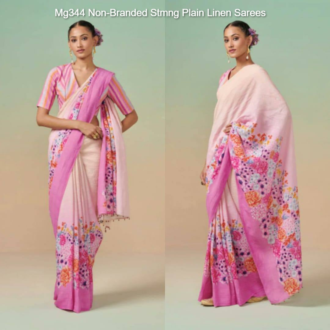 Mg344 Non-Branded Stmng Plain Linen Sarees