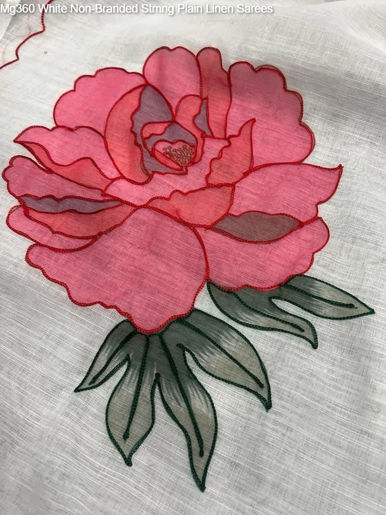 Mg360 White Non-Branded Stmng Plain Linen Sarees