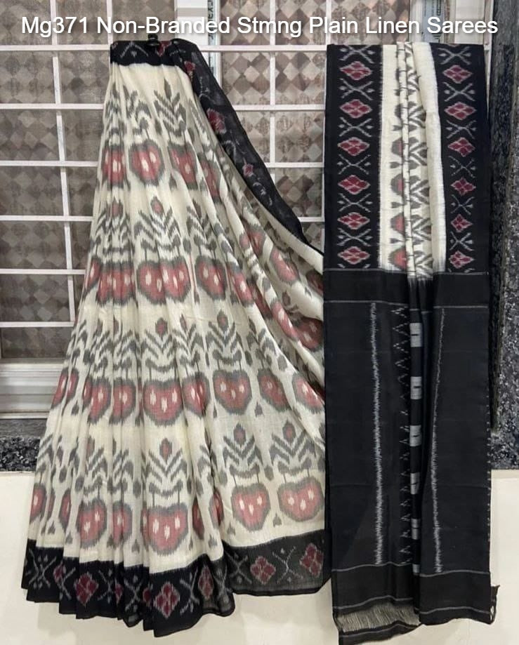 Mg371 Non-Branded Stmng Plain Linen Sarees