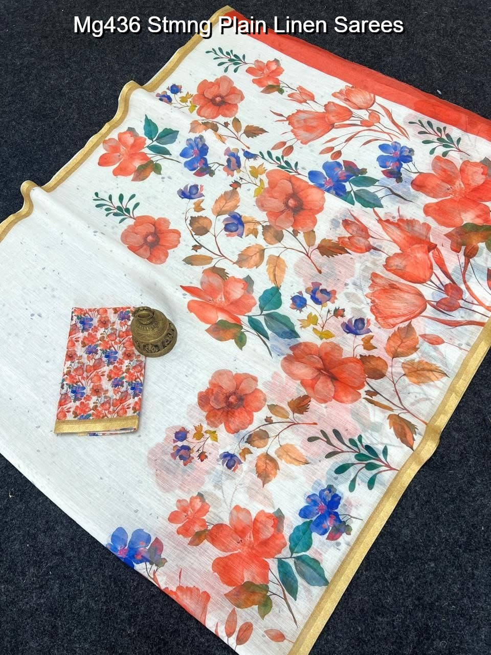 - Fabric Detail: Saree : Plain Linen Digital Print, Cut : 5.5 Mtr , Blouse : Plain Linen With Digital Print, Cut : 1 Mtr Unstitched , ,