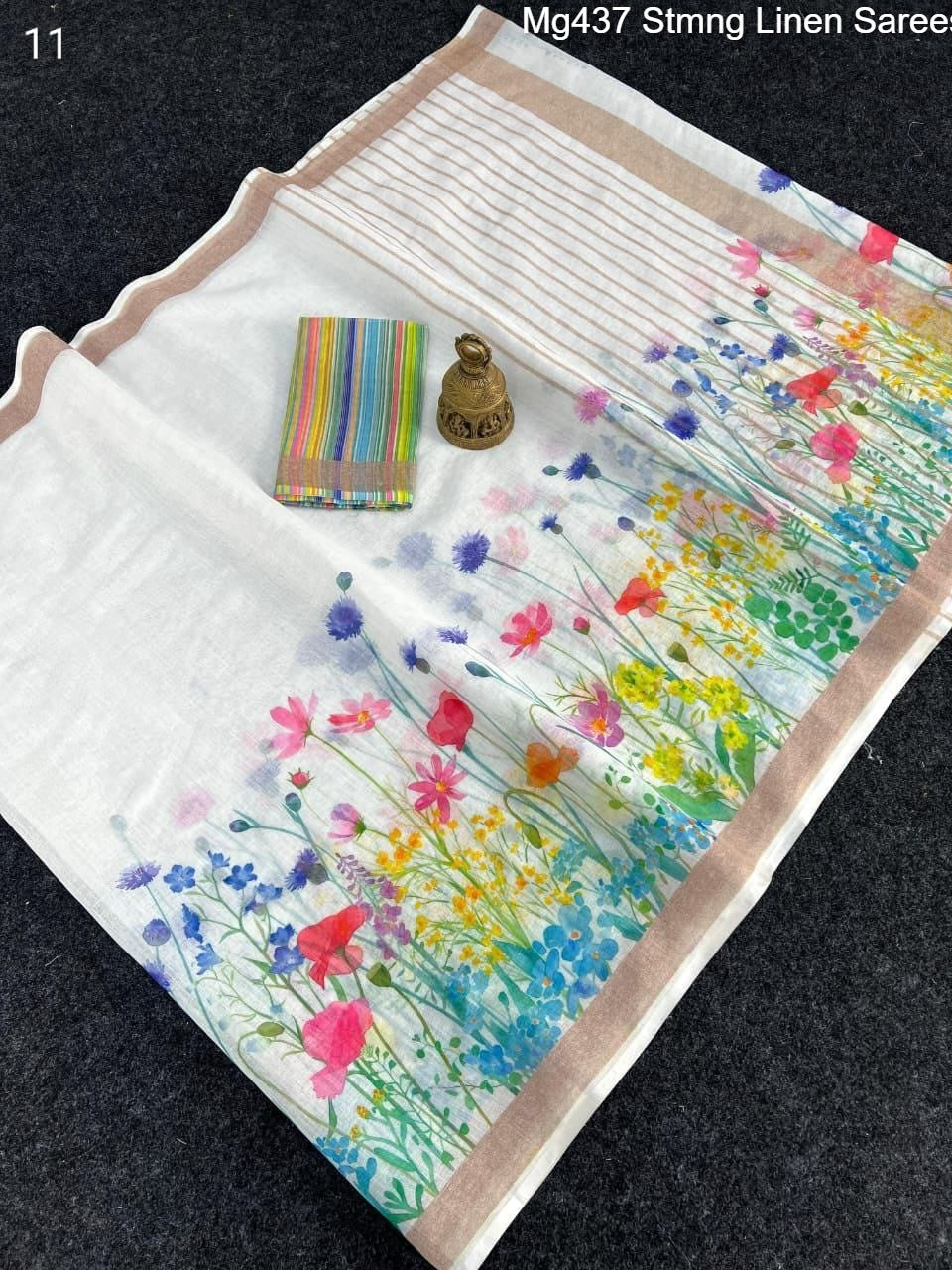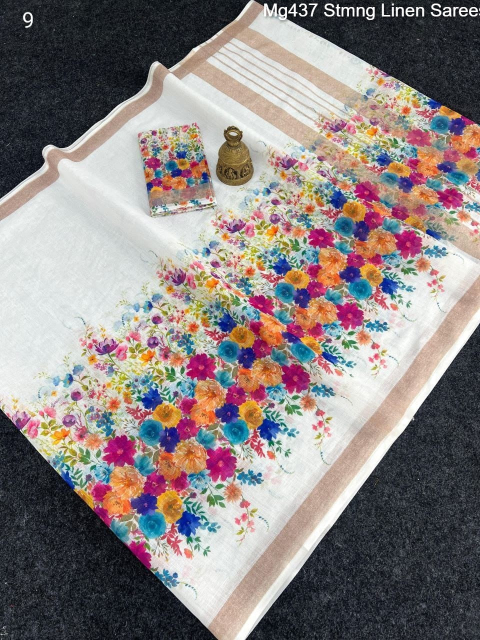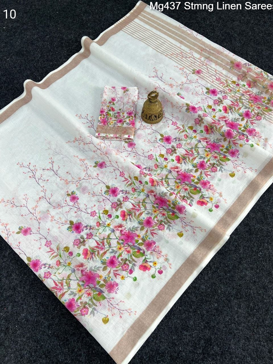- Fabric Detail: Saree : Plain Linen Digital Print, Cut : 5.5 Mtr , Blouse : Plain Linen With Digital Print, Cut : 1 Mtr Unstitched , ,