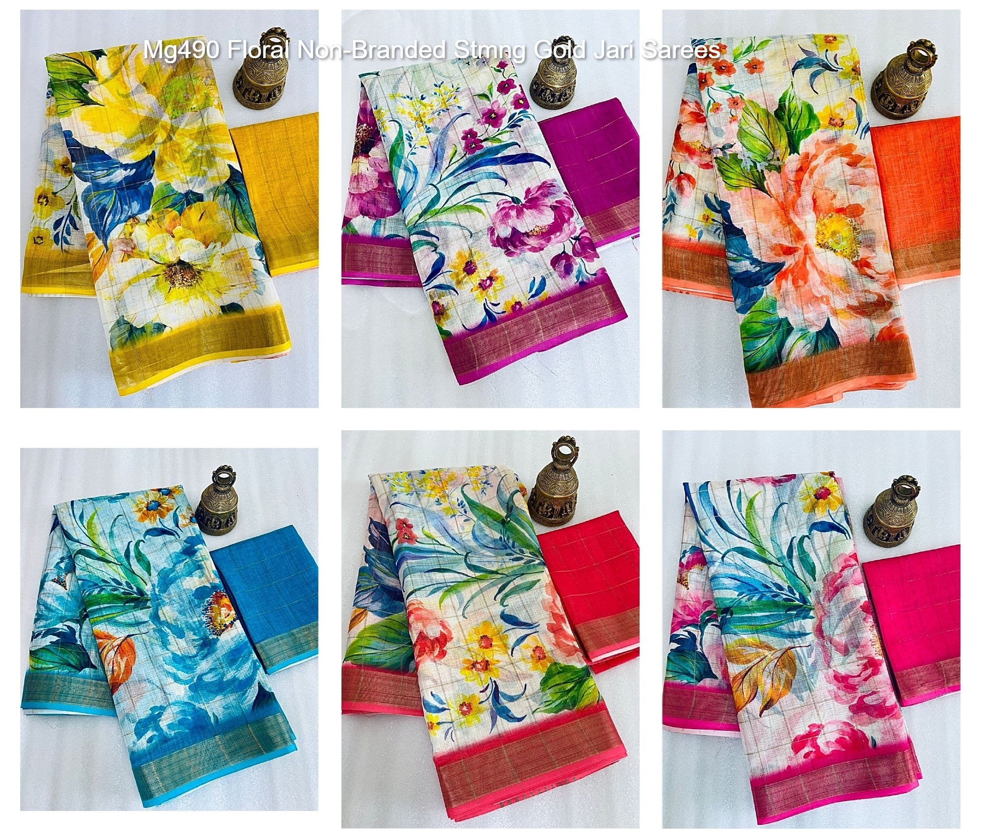 Mg490 Floral Non-Branded Stmng Gold Jari Sarees