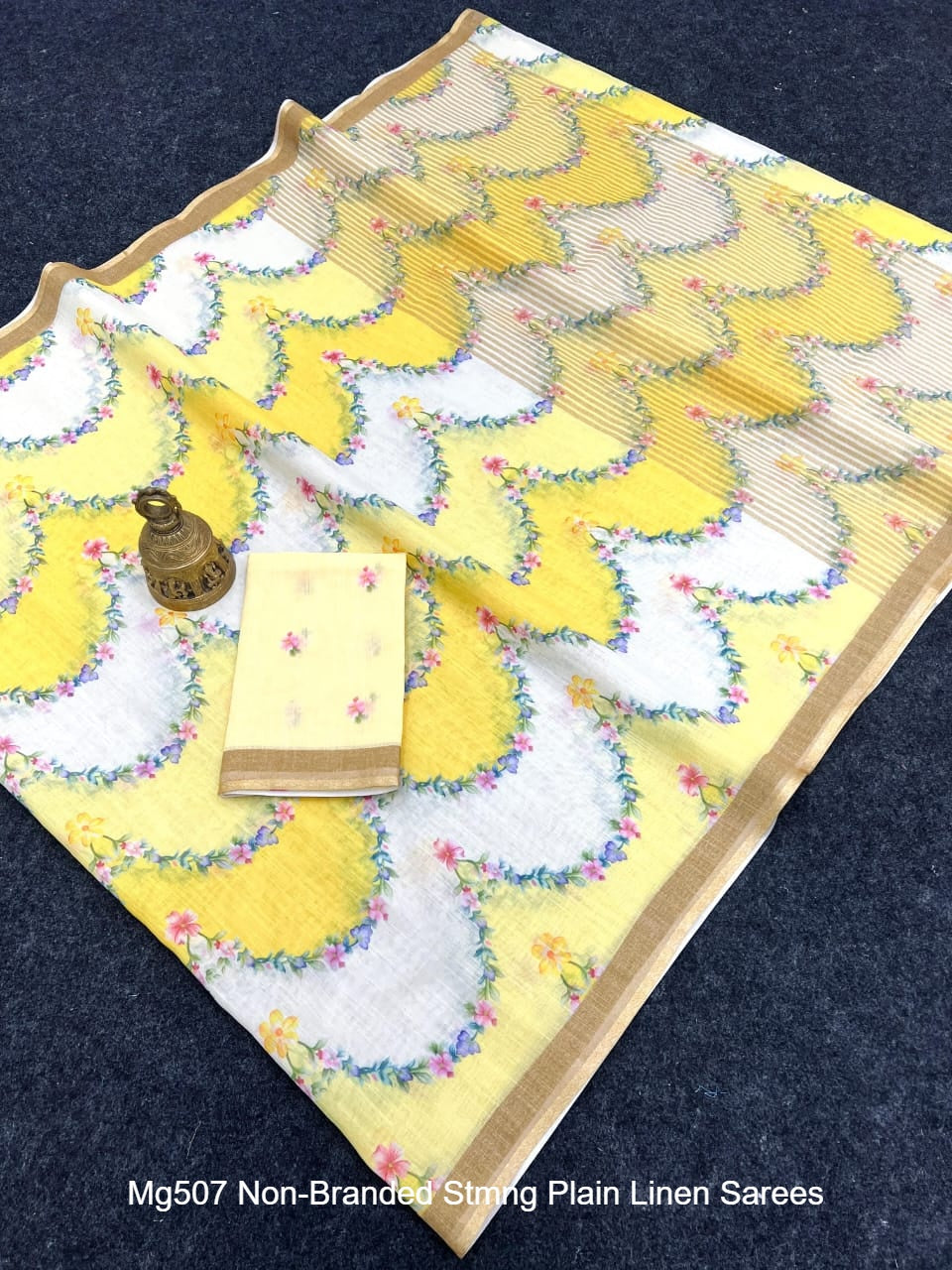 Mg507 Non-Branded Stmng Plain Linen Sarees