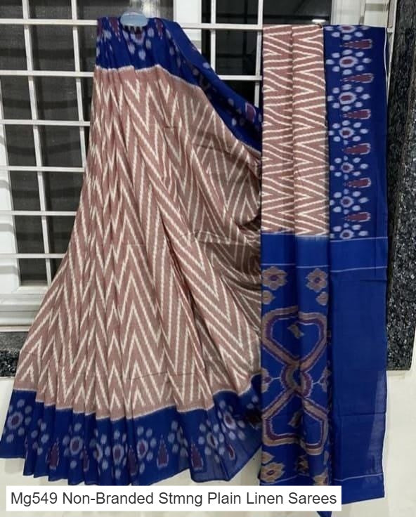 Mg549 Non-Branded Stmng Plain Linen Sarees