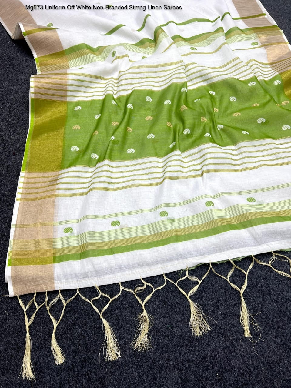Mg573 Uniform Off White Non-Branded Stmng Linen Sarees