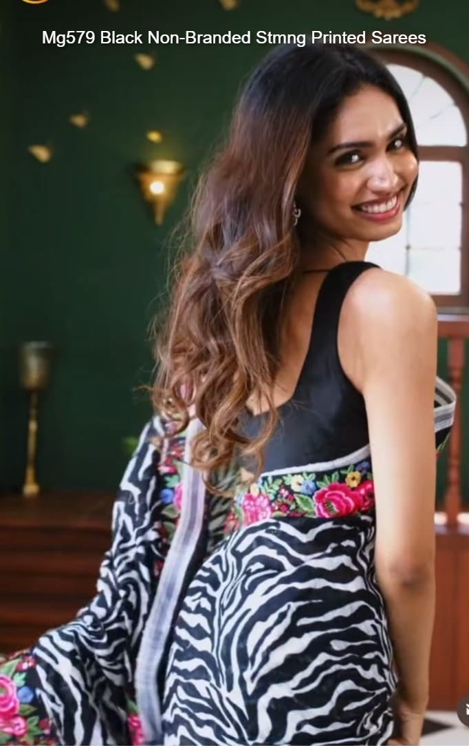 Mg579 Black Non-Branded Stmng Printed Sarees