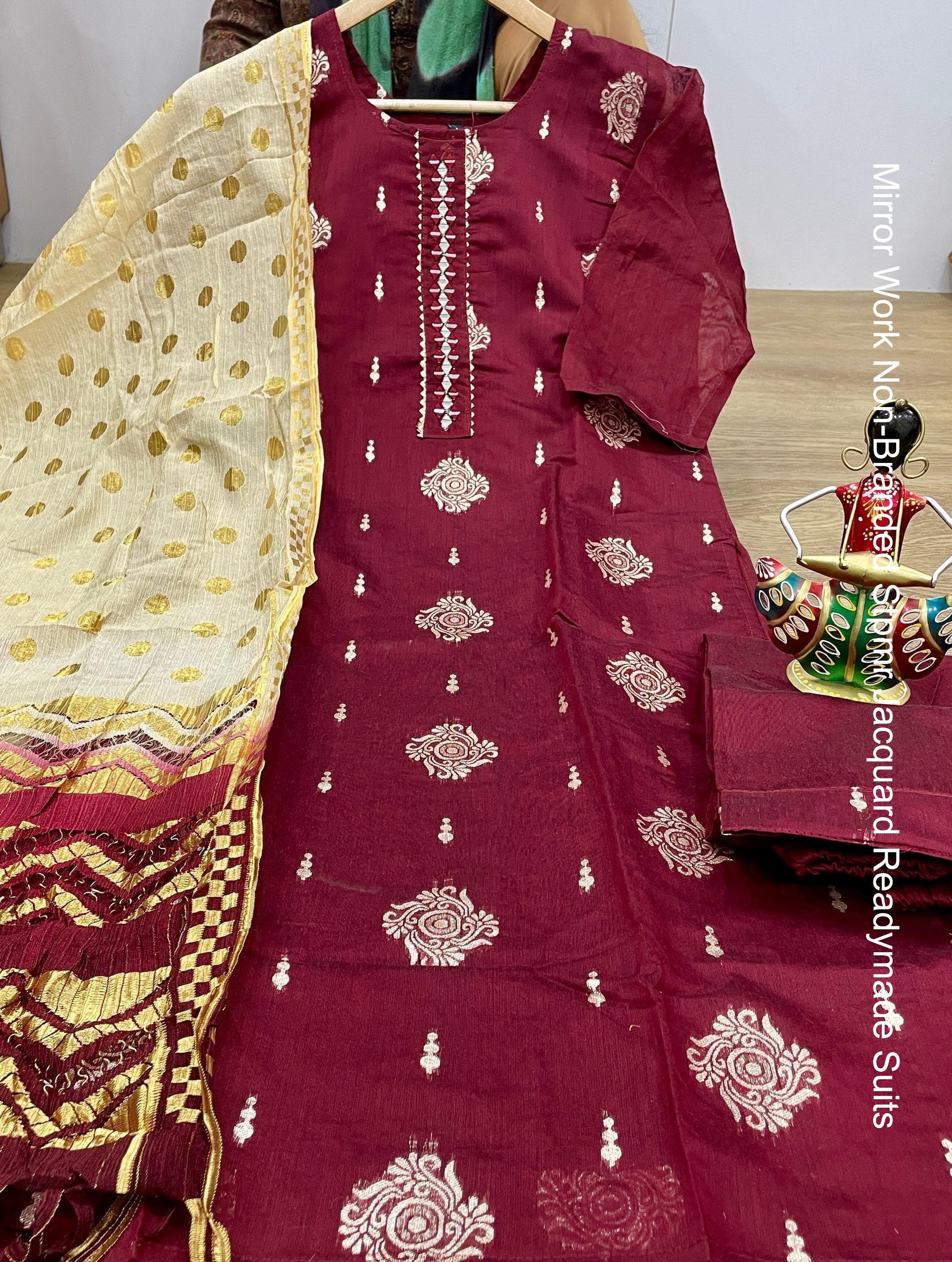 Mirror Work Non-Branded Stpmr Jacquard Readymade Suits