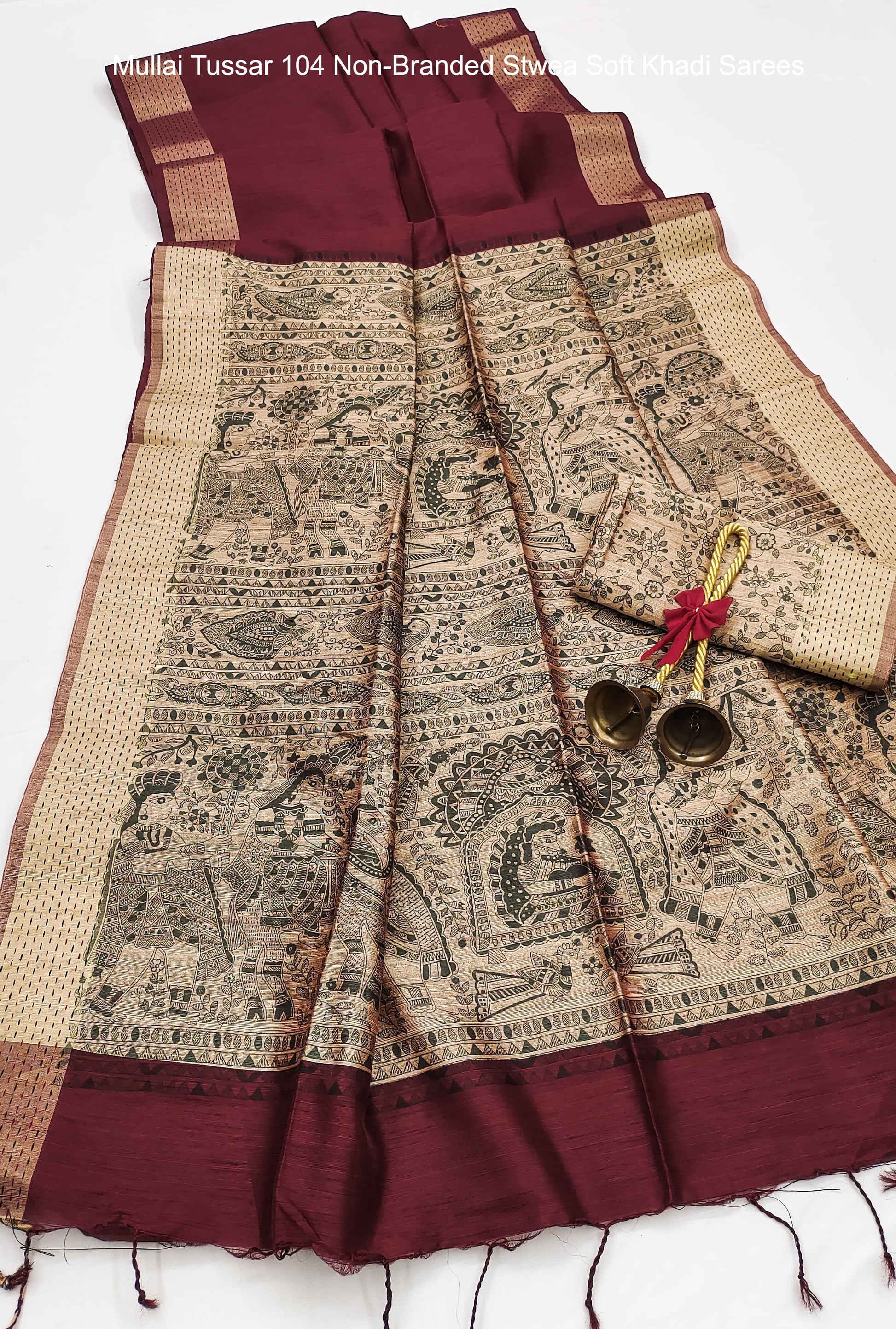Mullai Tussar 104 Non-Branded Stwea Soft Khadi Sarees