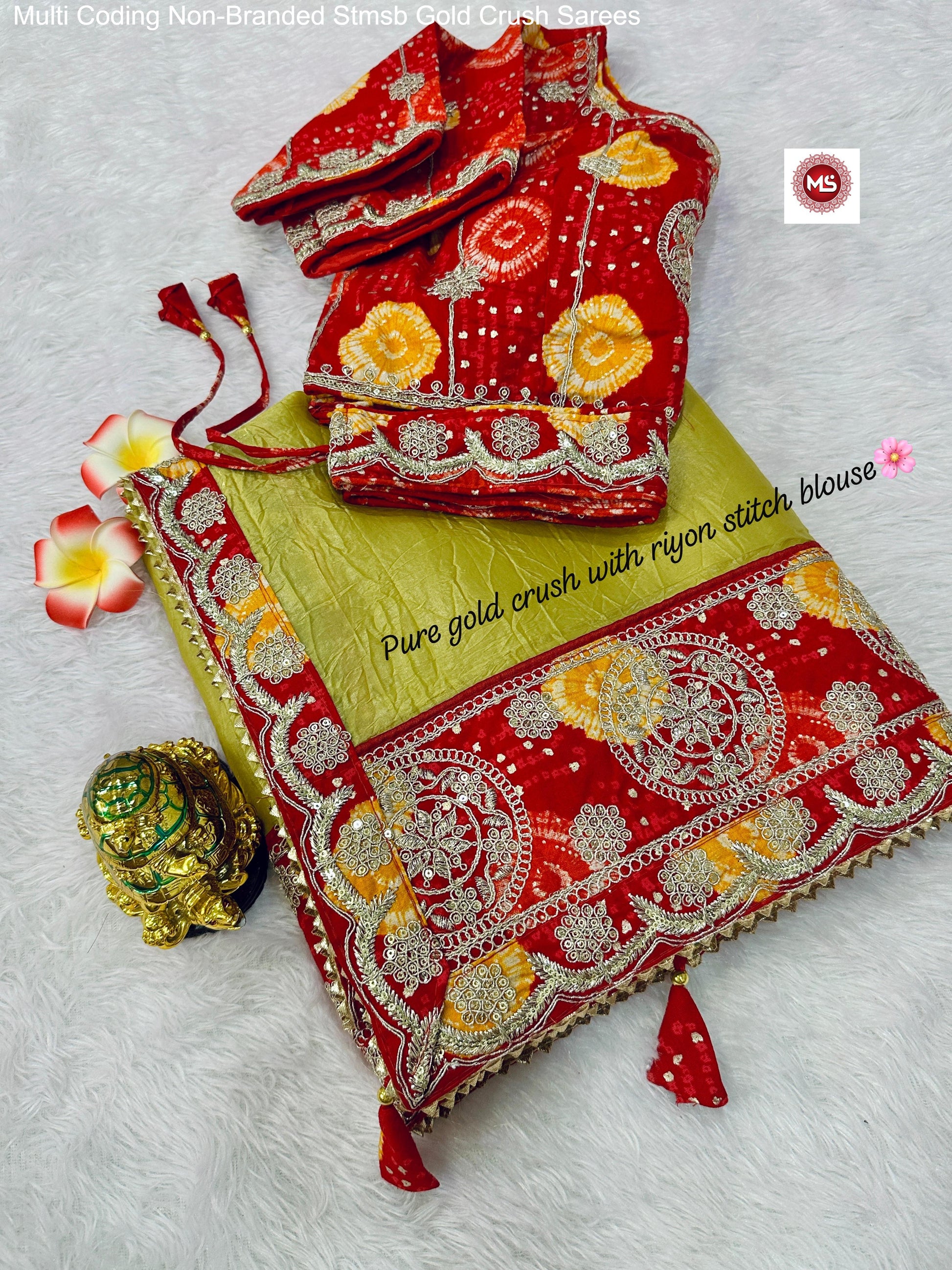 Multi Coding Non-Branded Stmsb Gold Crush Sarees