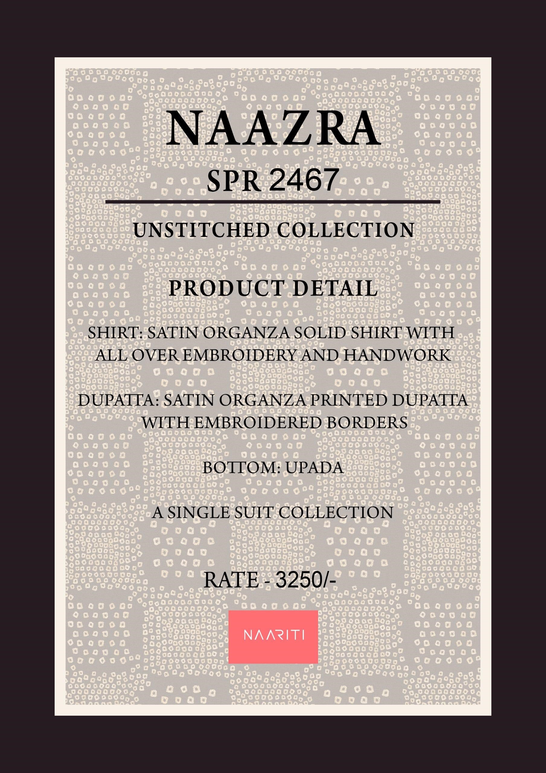 Naazra 2467 Naariti Satin Organza Unstitched Suits