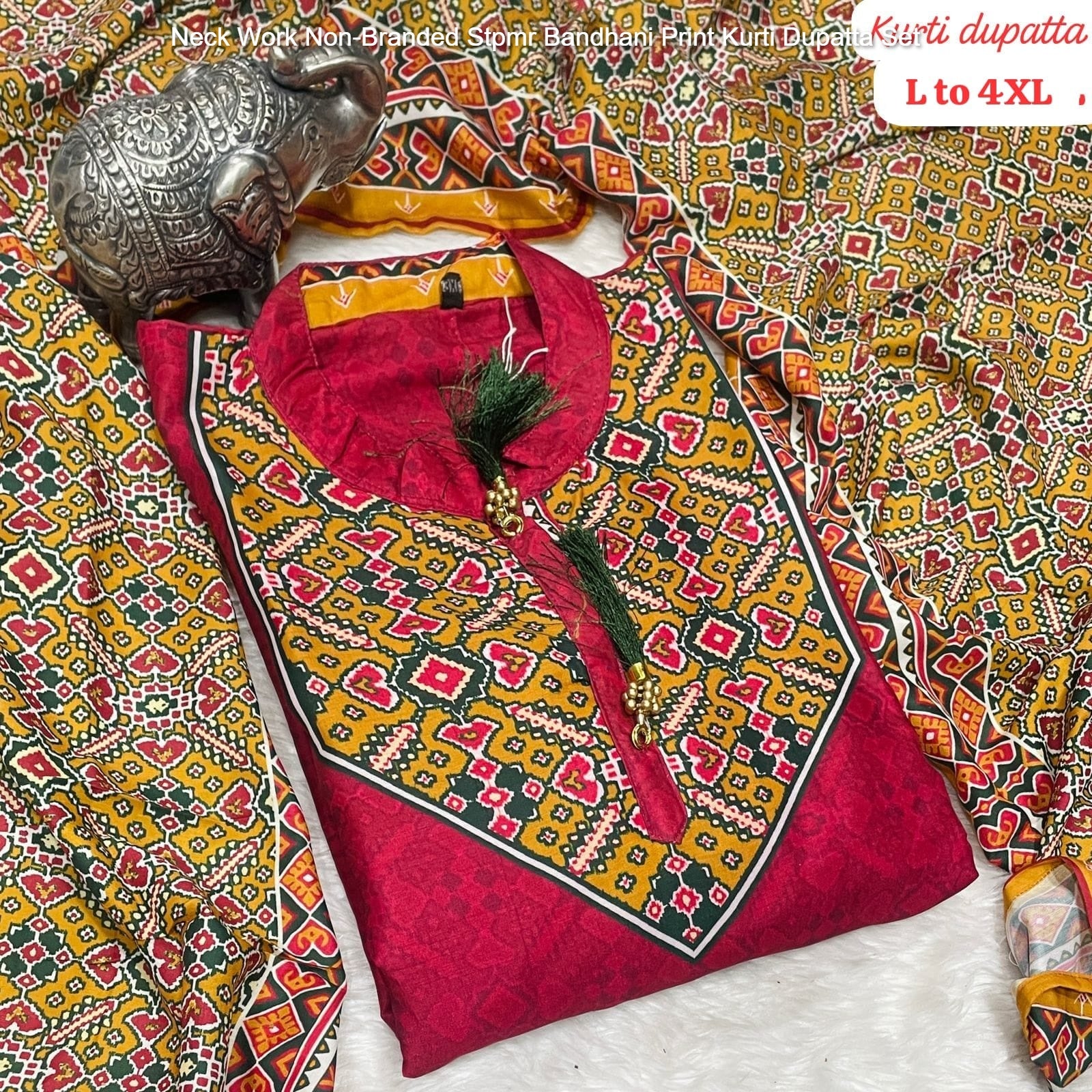 - Neck Work Non-Branded Stpmr Bandhani Print Kurti Dupatta Set Dealer Ahmedabad Surat Wholesale Gujarat India Lowest Price Best Quality Buy Purchase Shipping Kurta Salwaar Kameez Also free Cash on delivery