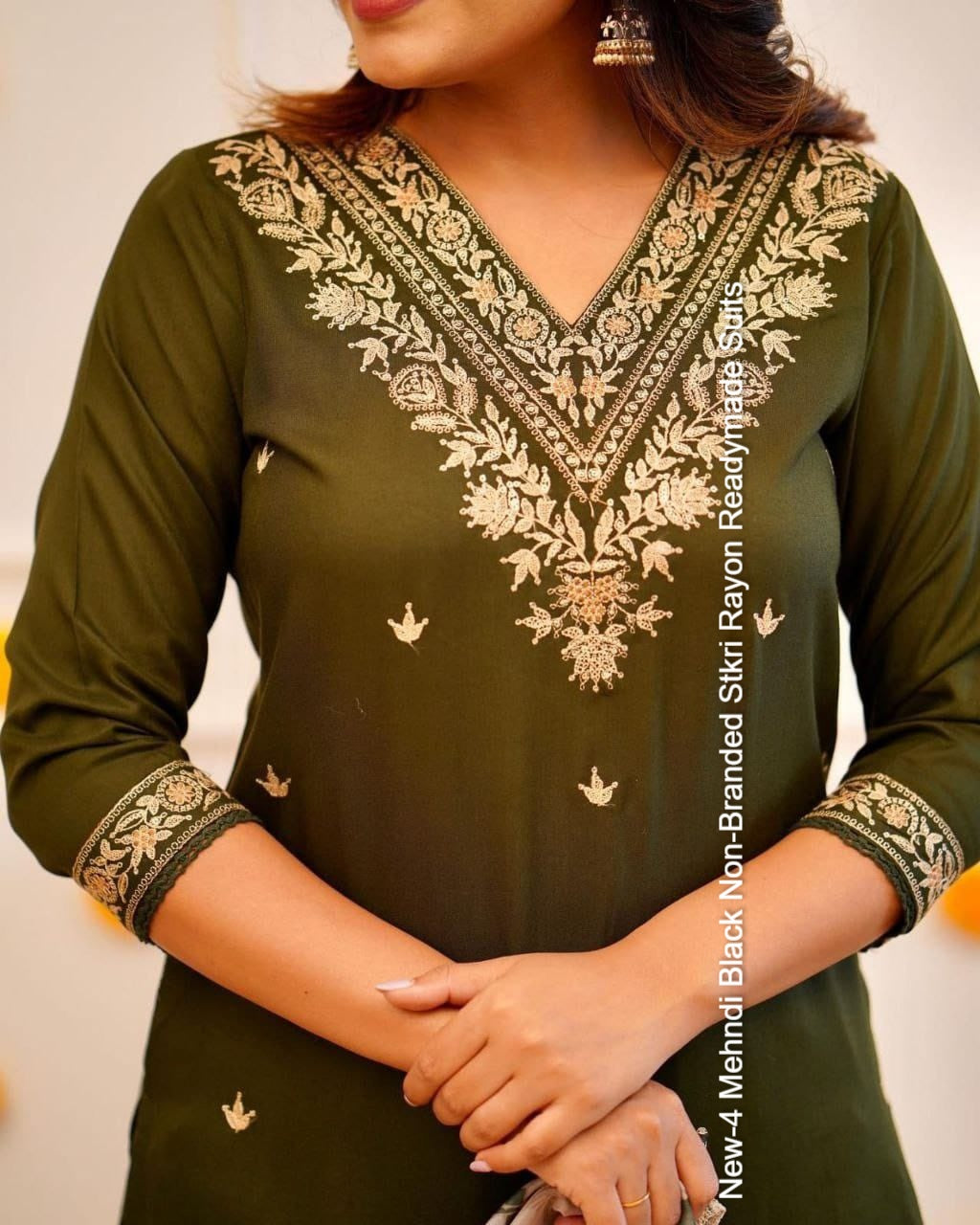 New-4 Mehndi Black Non-Branded Stkri Rayon Readymade Suits