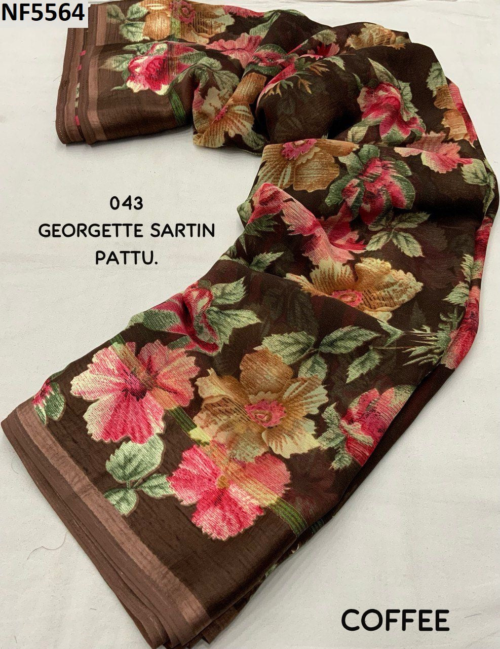 - Fabric Detail: Saree : Soft Georgette Gala Style Floral Printed, Cut : 5.5 Mtr , Blouse : Running, Cut : 1 Mtr Unstitched , ,