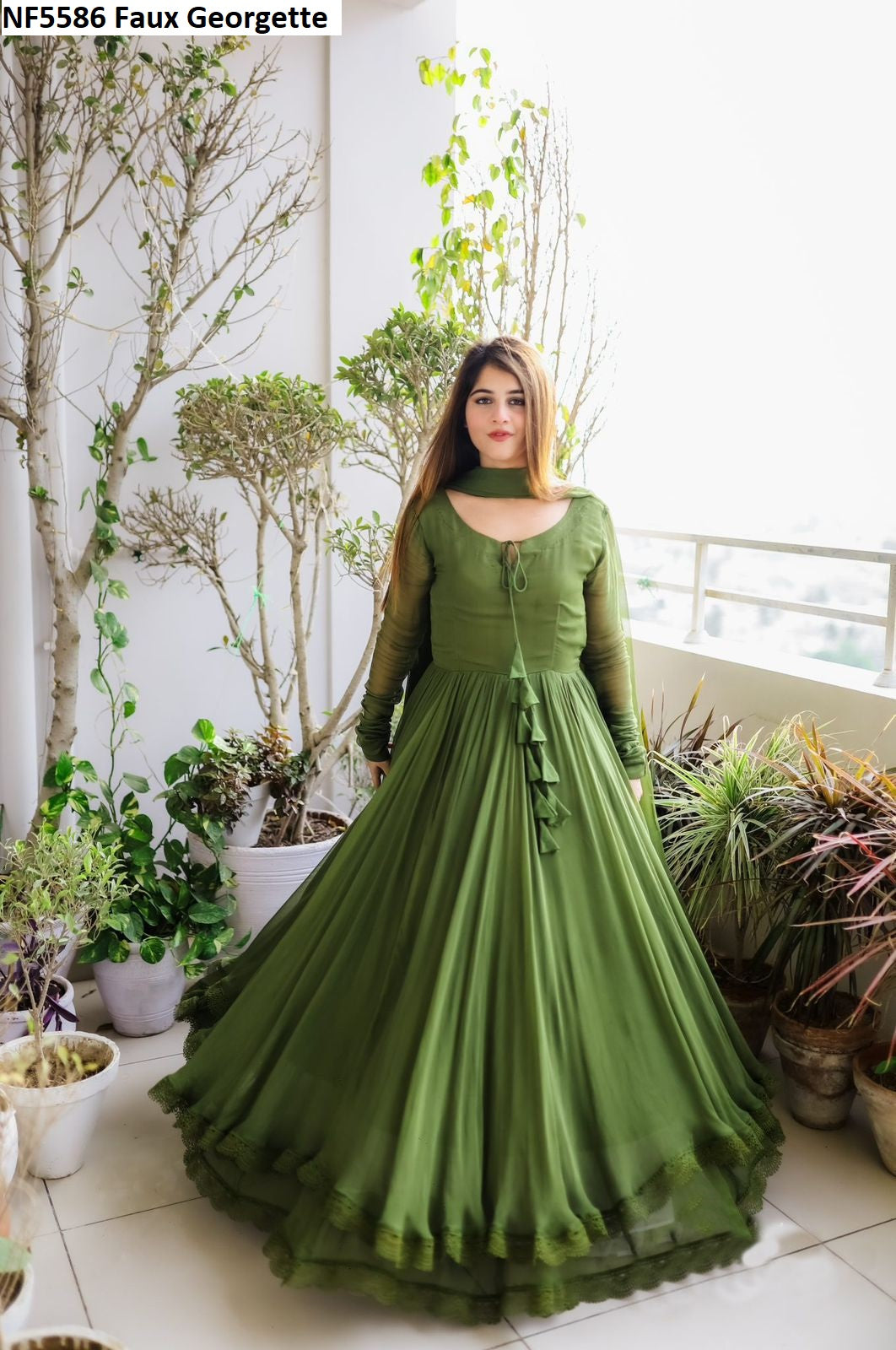 Nf5586 Faux Georgette Vmk. Gown Dupatta Set