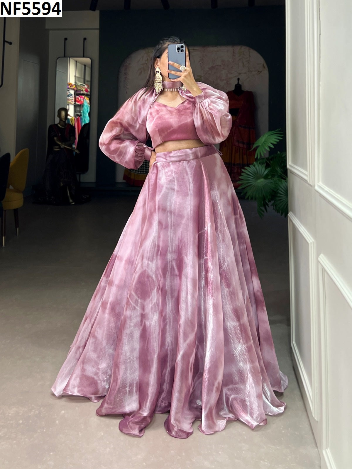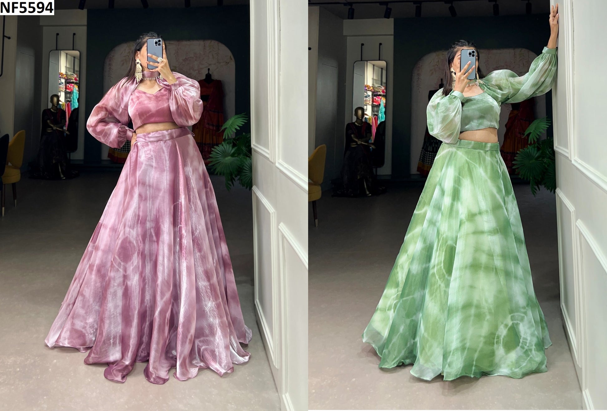 - Fabric Detail: Lehenga : Burberry Silk Shibori Print Support Up To 42 Apx, Length : 41 Apx, Flare : 8 Mtr, Inner : Silk , Blouse : Burberry Silk Shibori Print, Length : 15 Apx, Size : 38 There Is Margin Customer Can Adjust Up To 42 Apx , Neck Koti : Burberry Silk Shibori Print Stitched Full Sleeves Free Size ,