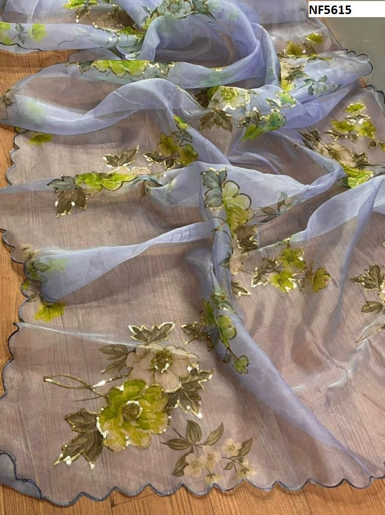 - Fabric Detail: Saree : Soft Pure Organza Sequence Work Digital Printed , Blouse : Banglori Silk , ,