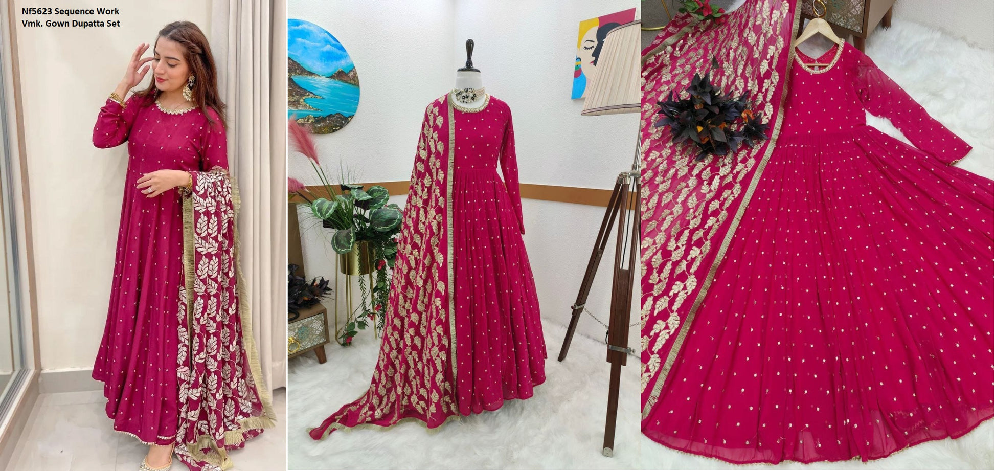 - Nf5623 Sequence Work Vmk. Gown Dupatta Set Dealer Ahmedabad Surat Wholesale Gujarat India Lowest Price Best Quality Buy Purchase Shipping Kurta Salwaar Kameez Also free Cash on delivery