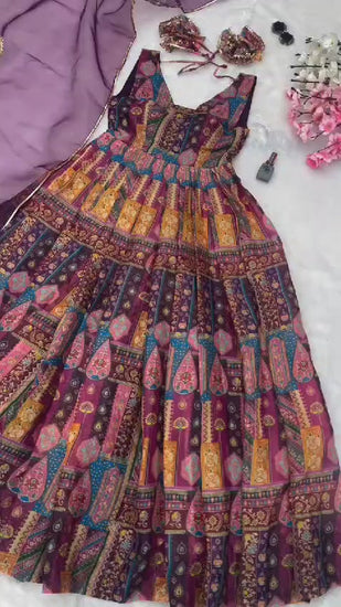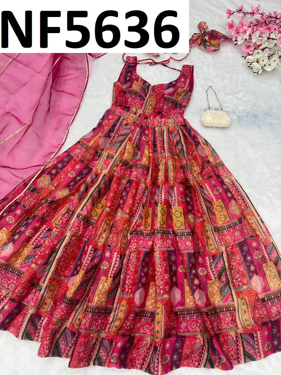 Nf5636 Vmk. Organza Gown Dupatta Set