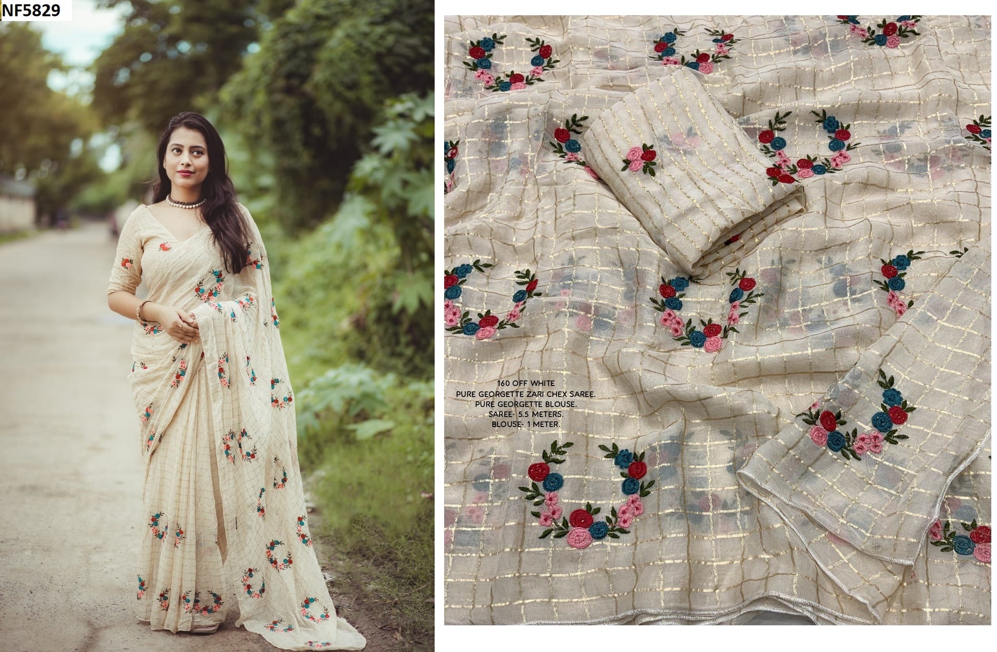 - Fabric Detail: Saree : Pure Georgette Zari Woven Chex With Multi- Color Thread Embroidery, Cut : 5.5 Mtr , Blouse : Pure Plain Georgette With Heavy Embroidery Perfecy Matched, Cut : 1 Mtr Unstitched , ,