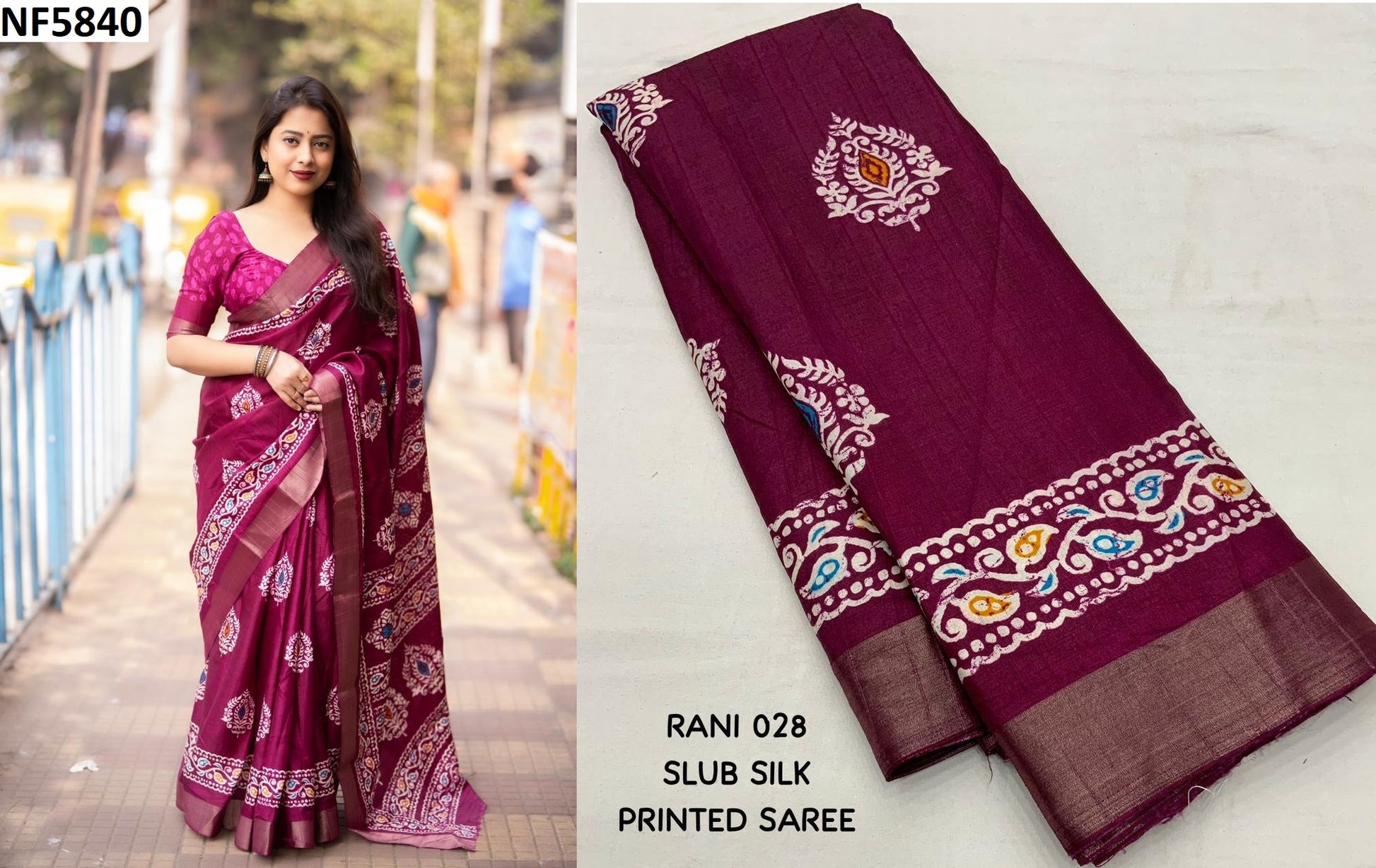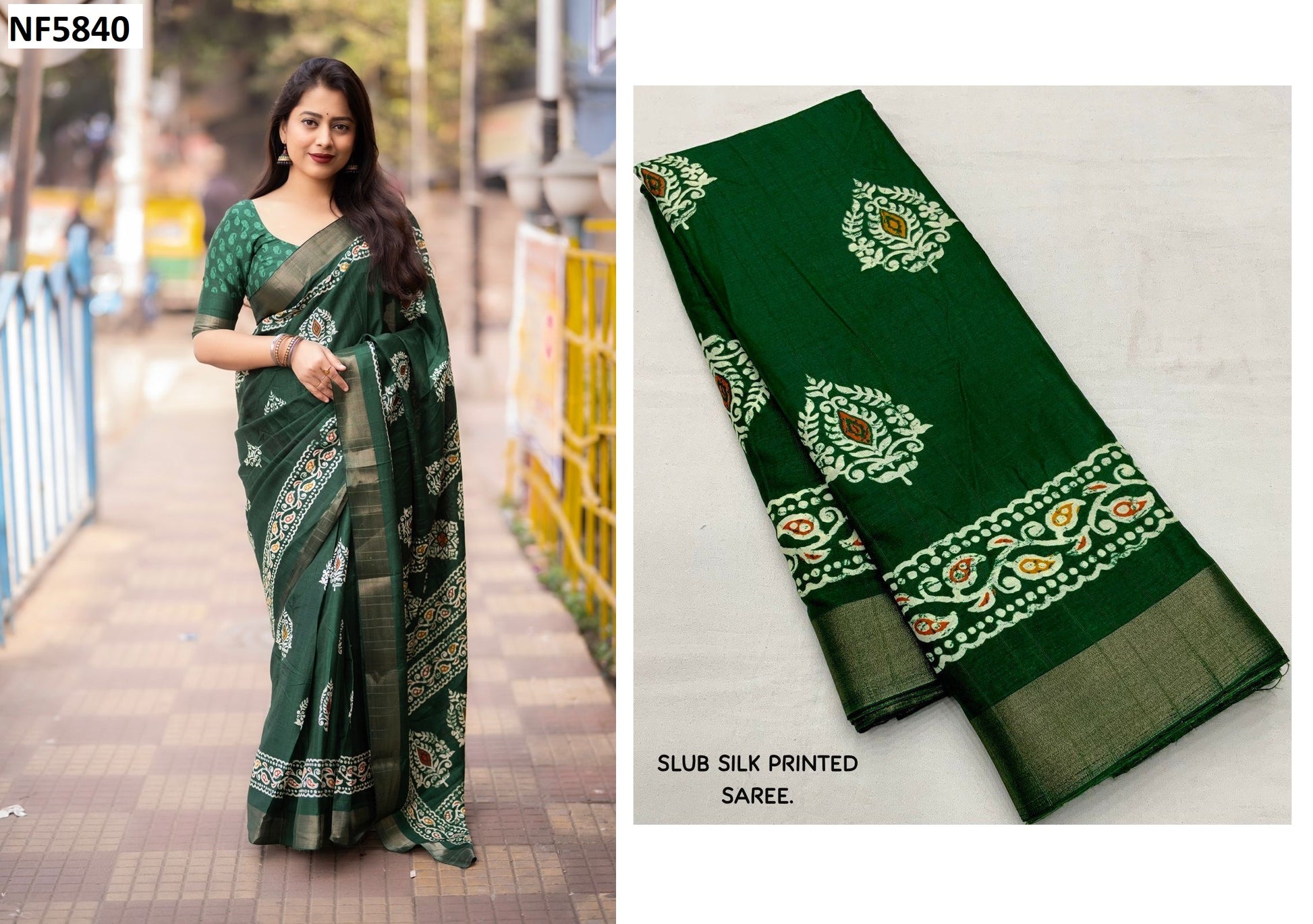 - Fabric Detail: Saree : Soft Silk Slub Woven With Batik Print, Full Length : 6.30 Mtr , Blouse : Running Batik Printed, ,