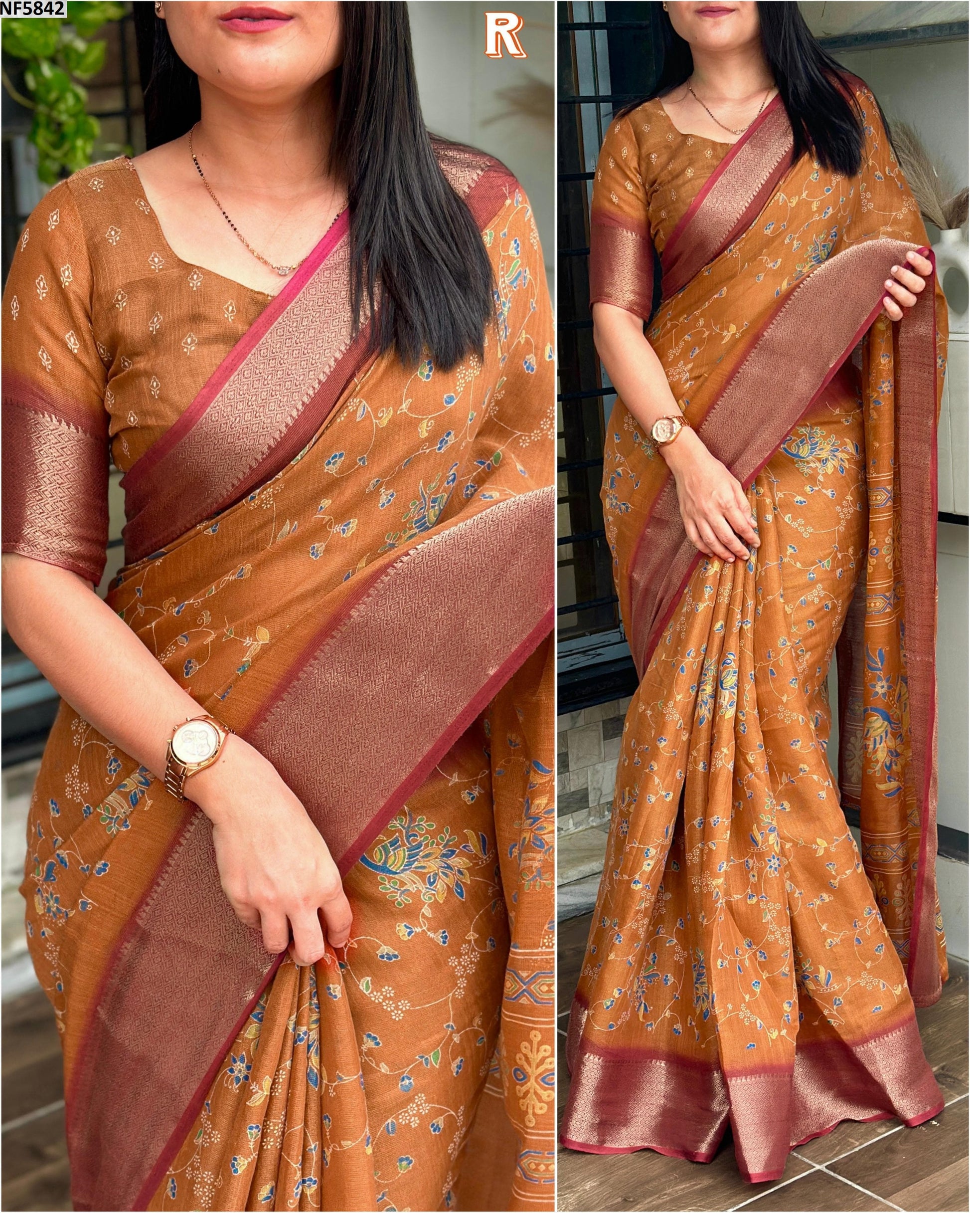 - Fabric Detail: Saree : Designer Padding Printed With Zari Weaving In Fullzari Border Tussles In Pallu, Full Length : 6.30 Mtr , Blouse : Cotton Zari Jacquard With Running, ,