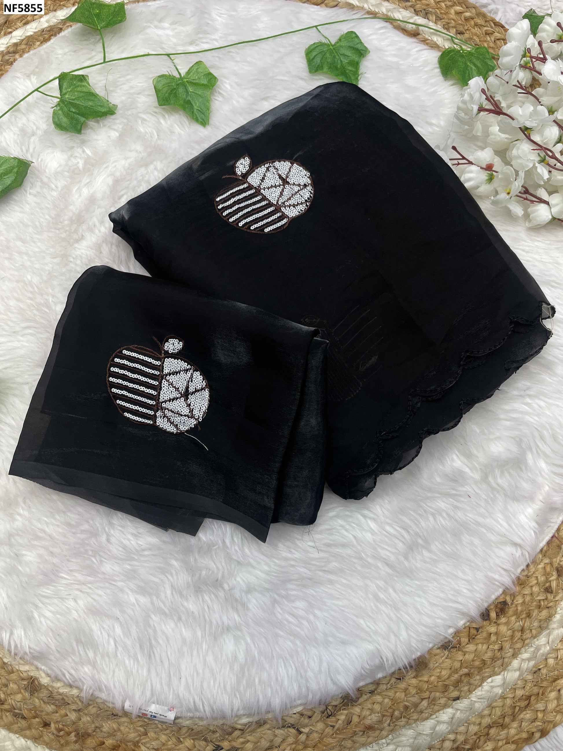 - Fabric Detail: Saree : Magic Designer Jimmy Choo With Designer Apple Sequence And Embriodery Work , Blouse : Running , ,