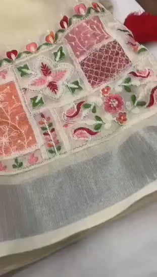 - Fabric Detail: Saree : Soft Linen With Silver Woven Pattu Border Cotton Tassels On Pallu, Cut : 5.5 Mtr , Blouse : Contrast Phantom Silk With White Thread Embroidered,Cut : 1 Mtr Unstitched , ,