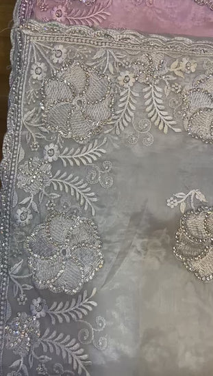 - Fabric Detail: Saree : Fancy Crystal With Embroidery Work Pure Viscose Thread Use Ton Two Ton With Zarkhan Work, Full Length : 6.50 Mtr , Blouse : Running Use In With Embroidery Work With Zarkhan Work, ,