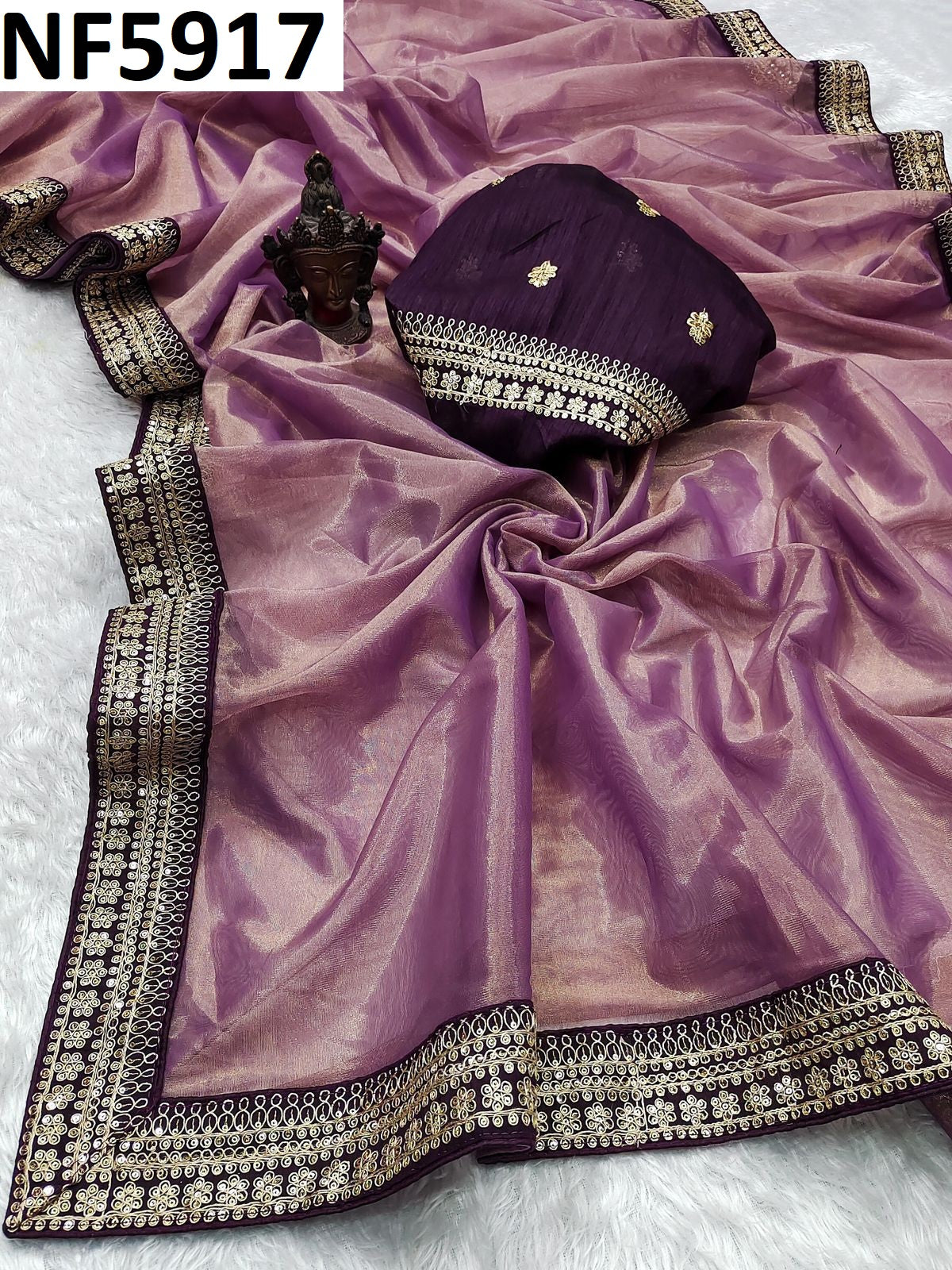 - Fabric Detail: Saree : Pure Soft Tissue Zari Base Heavy Cording Sequence Lace Border, Blouse : Bangalori Silk With Butti Work, ,