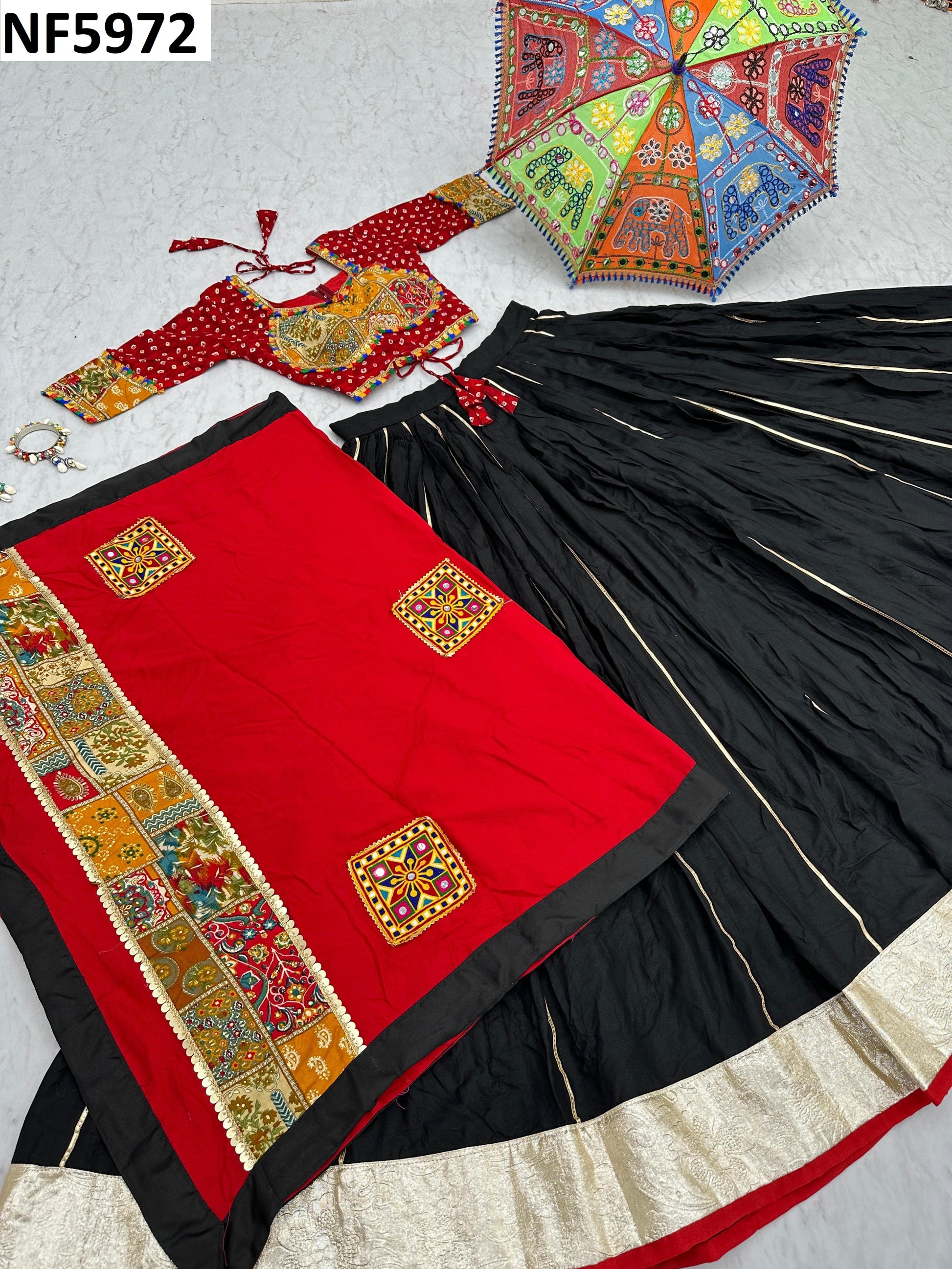 - Fabric Detail: Lehenga : Pure Cotton Ribbion Lace Work Canvas Patta, Flare : 6 Mtr, Inner : Micro Cotton , Blouse : Pure Cotton Foil Print Cups Attched Fully Stitched, Inner : Micro Cotton, Dupatta : Pure Cotton Gamathi With 4 Side Lace Border, Cut : 2.30 Mtr , Size : M Upto L Margin Xl Upto 2Xl Margin