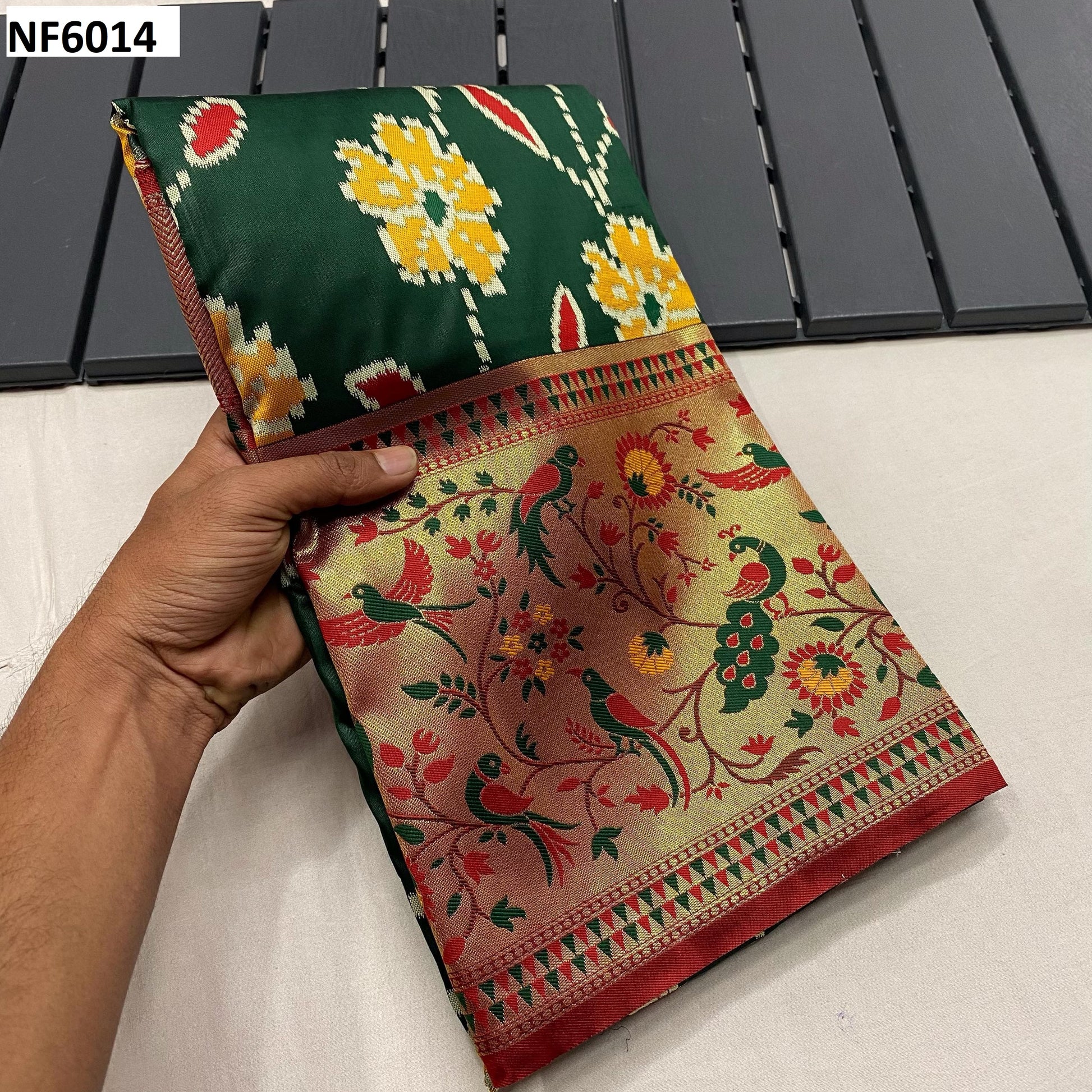 - Fabric Detail: Saree : Soft Silk With Patola Weaving Concepts All Over The Along With Contrast Weaving Border Design , Blouse : Running , ,