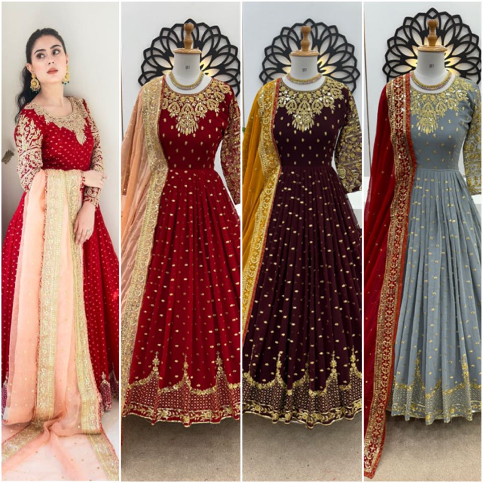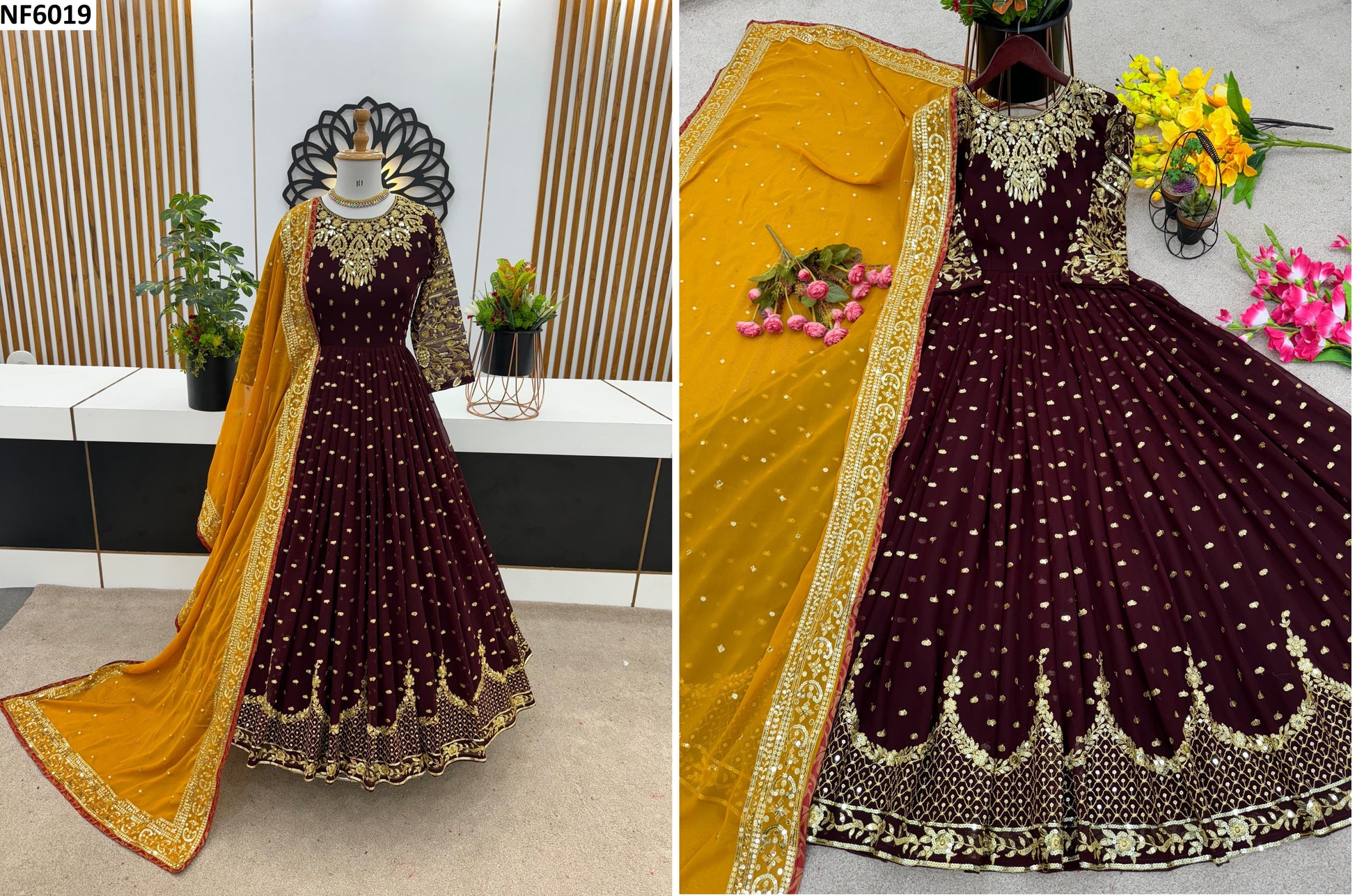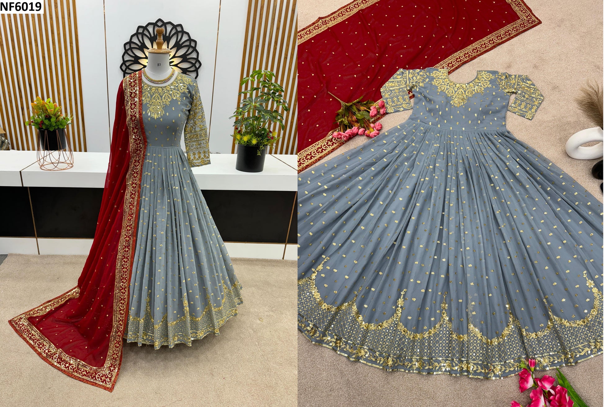 - Nf6019 Vmk. Embroidery Gown Dupatta Set Dealer Ahmedabad Surat Wholesale Gujarat India Lowest Price Best Quality Buy Purchase Shipping Kurta Salwaar Kameez Also free Cash on delivery