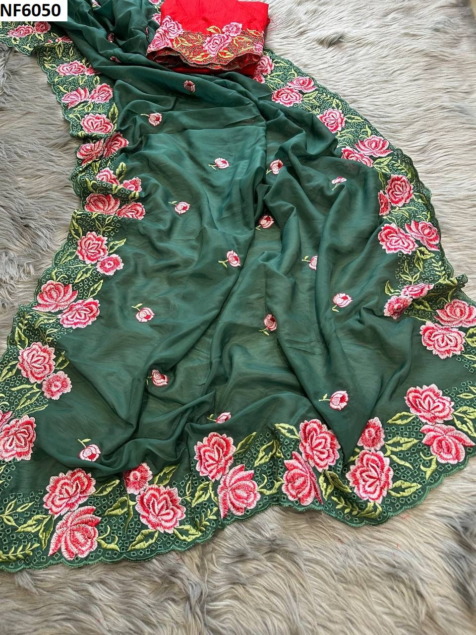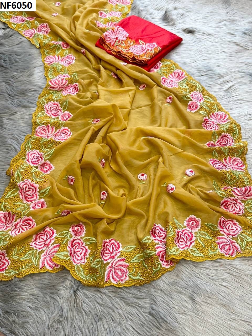 - Fabric Detail: Saree : Pure Organza Silk With Embroidery Work Multicolour Thread Work, Blouse : Raw Silk With Work , ,