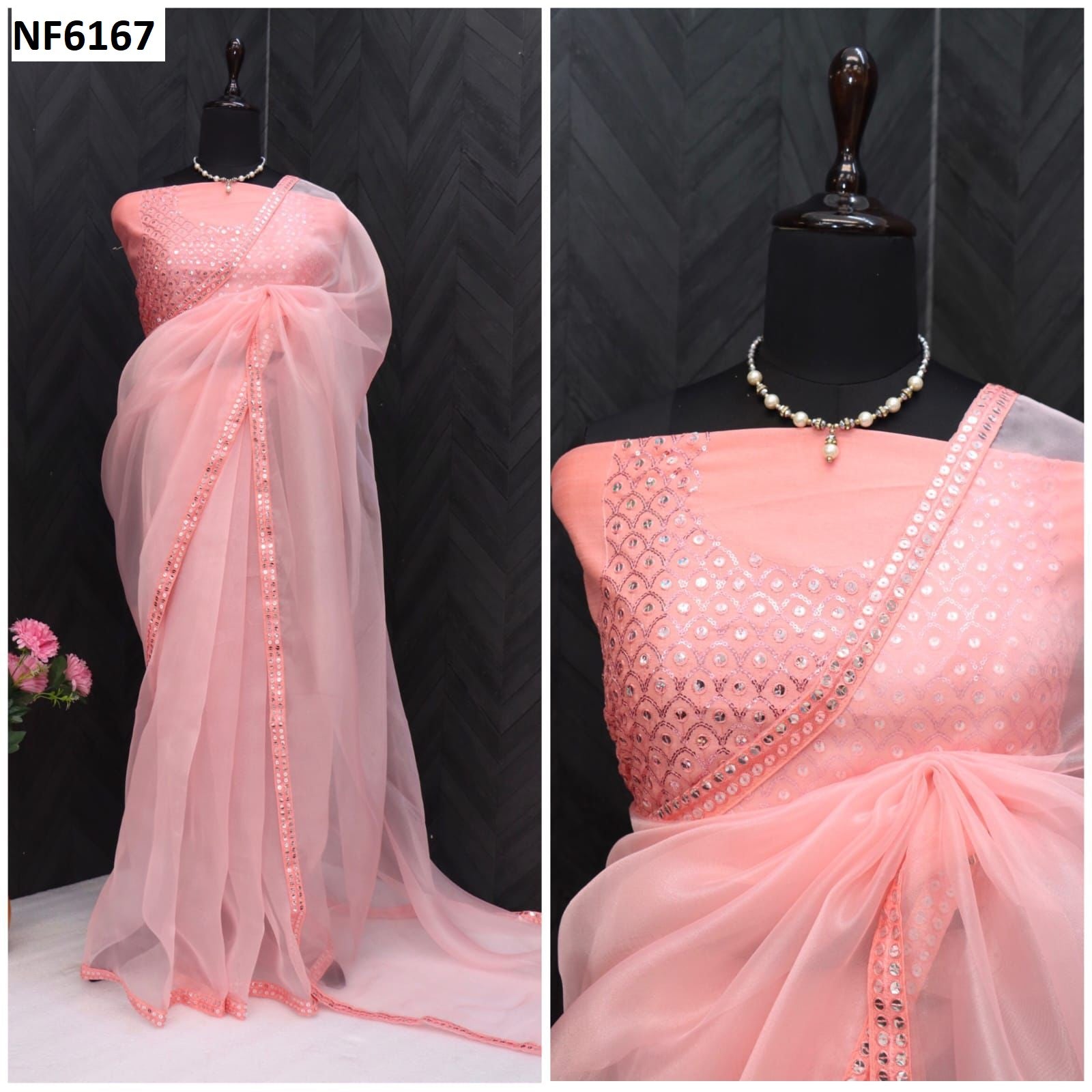 - Fabric Detail: Saree : Organza Silk Beautiful Designer Embroidered Sequence Work Of 7Mm , Blouse : Mono Diamond Silk Beautiful Designer Embroidered Twins Sequence Work, Cut : 0.80 Mtr Unstitched , ,
