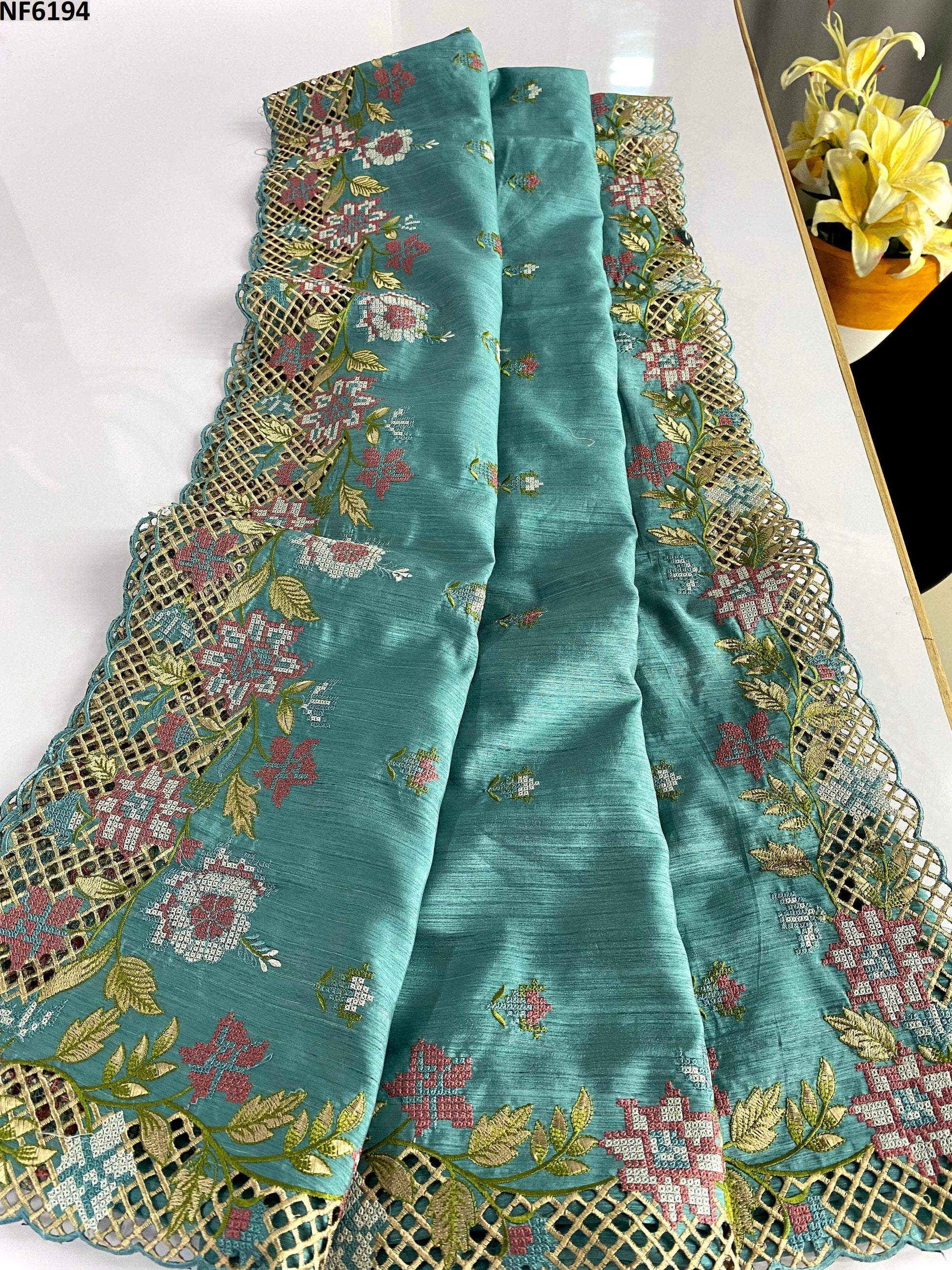 - Fabric Detail: Saree : Pure Marks Silk With All Over Beautiful Contrast Embroidery Work And Motifs Cutwork Border, Blouse : Full Work , ,