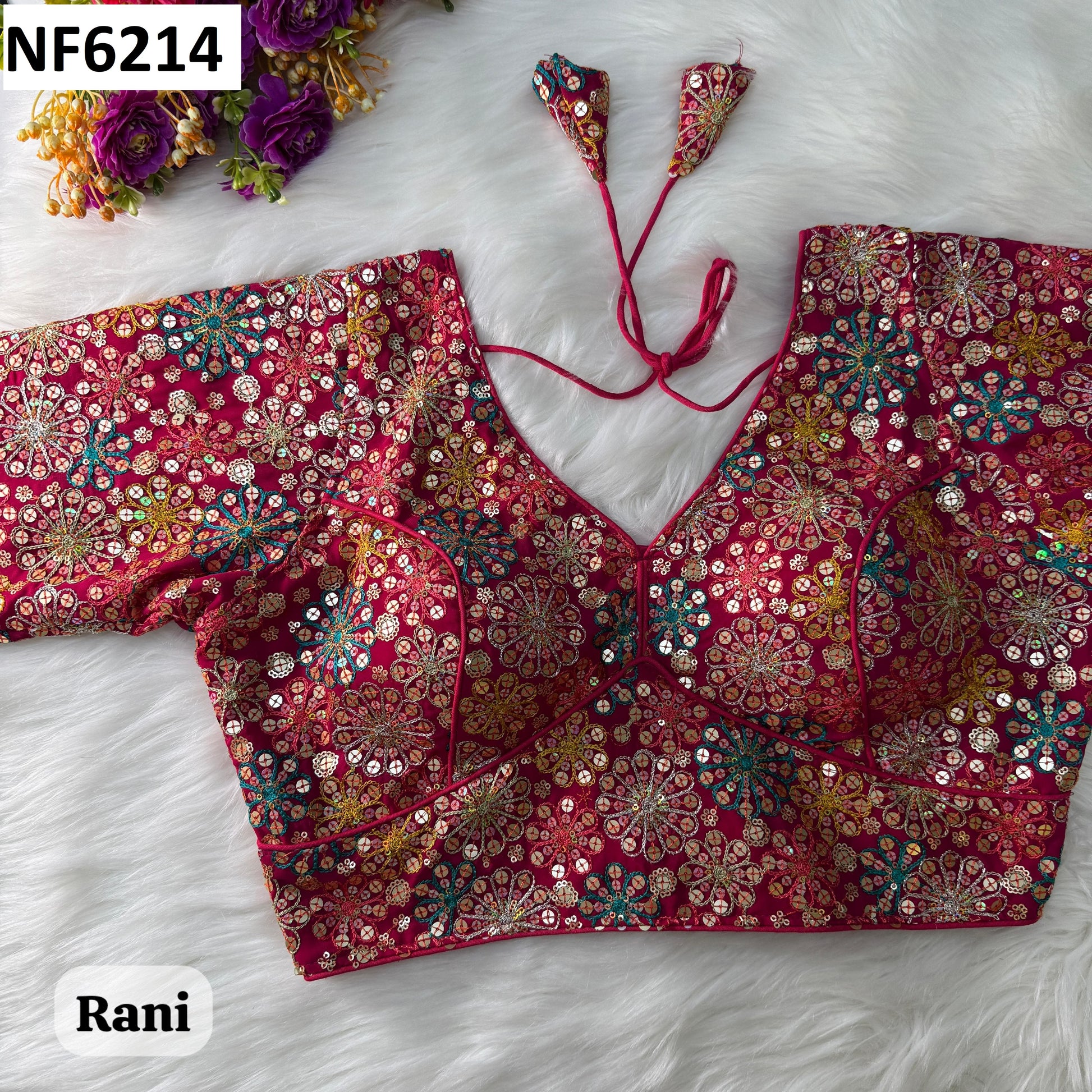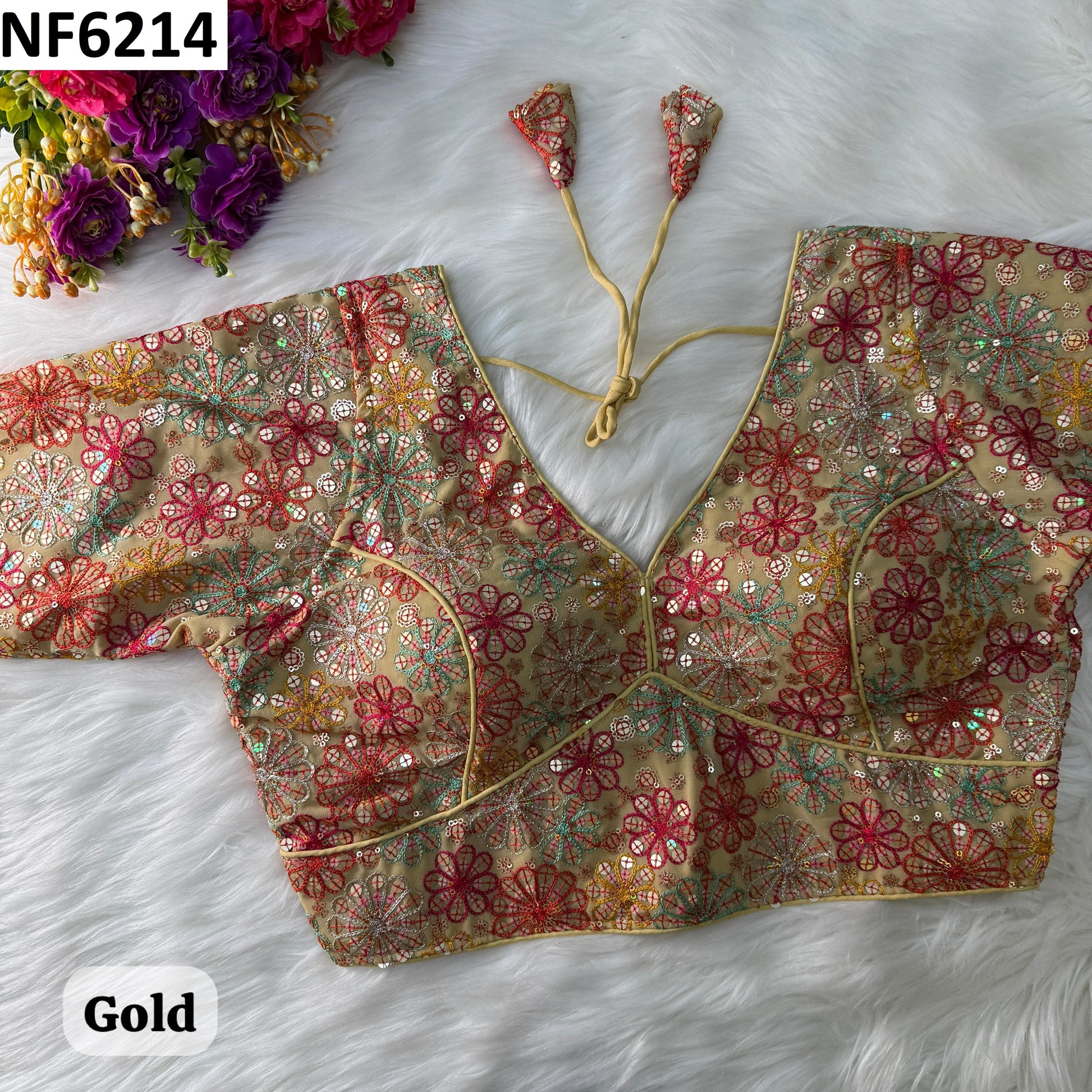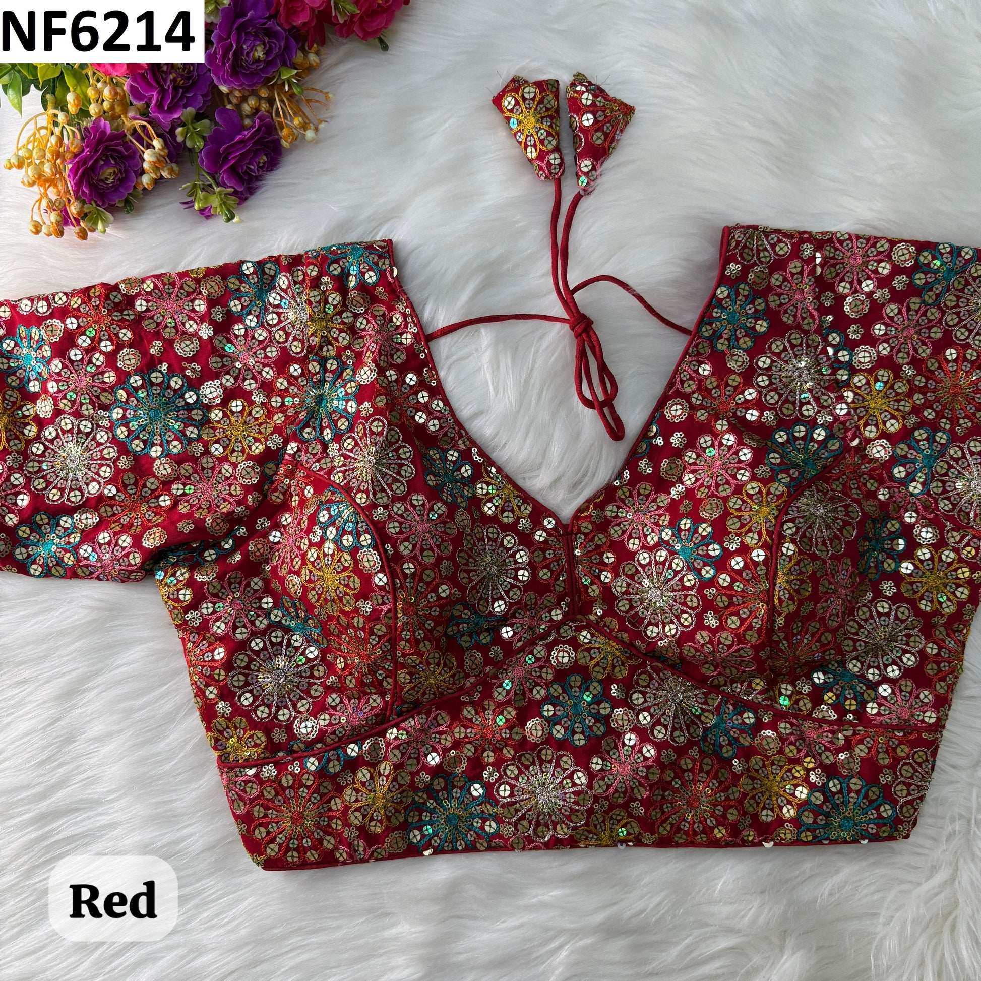 - Fabric Detail: Heavy Fox Georgette Beautiful Traditional Partywear Stitching Heavy Padded With Beautiful Neck Pattern Back Open Style, Sleeves 12 Inch Long Fancy Blouse , , , Size : 40 Ready Ulter Up To 42 Apx